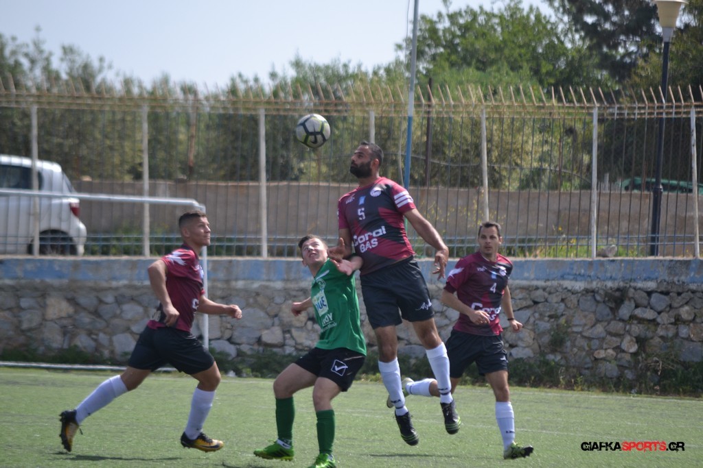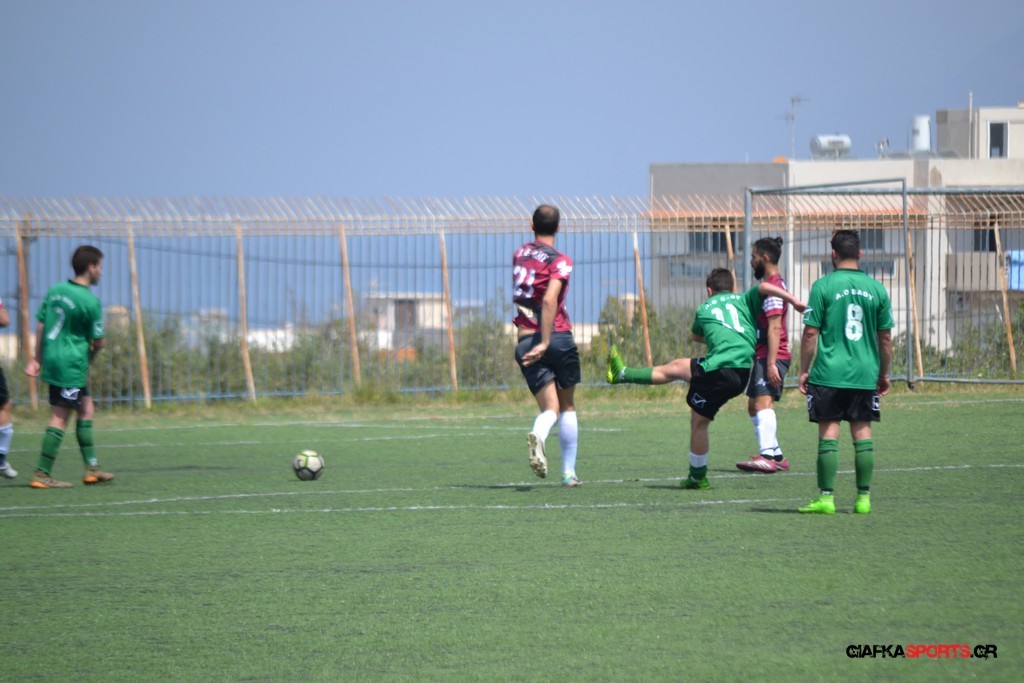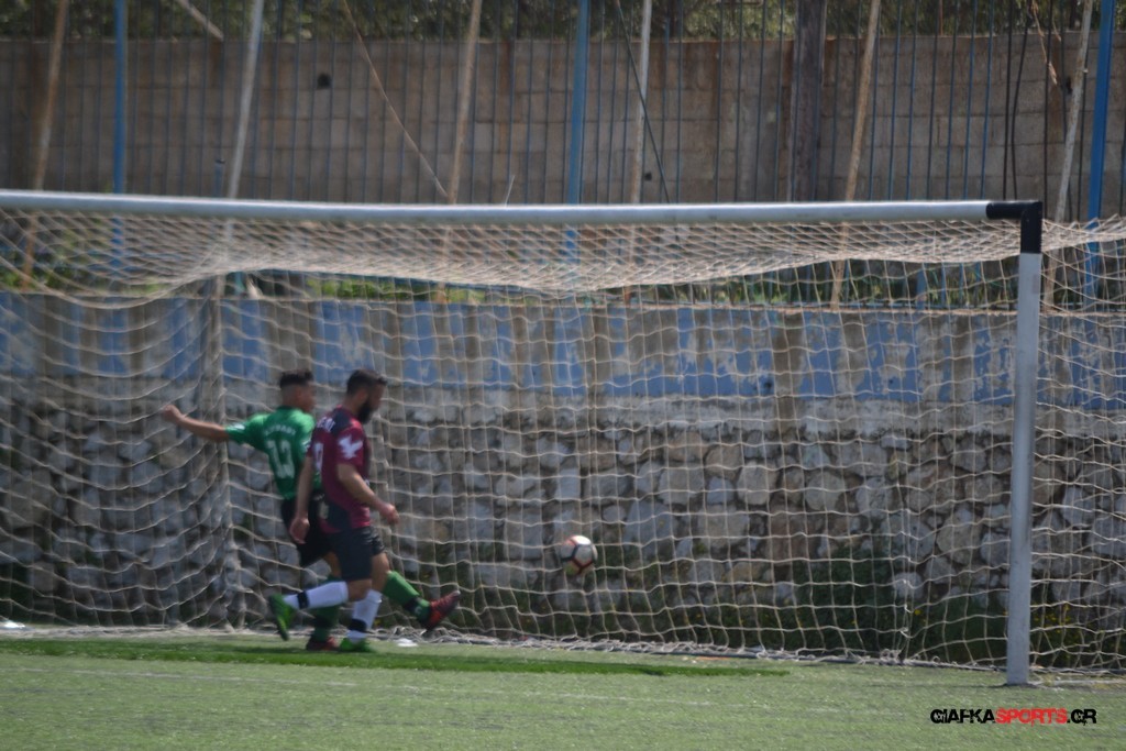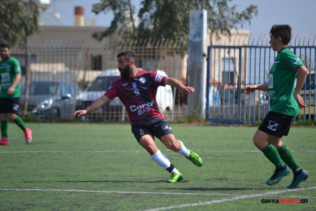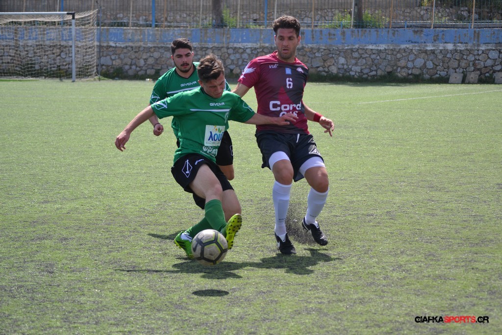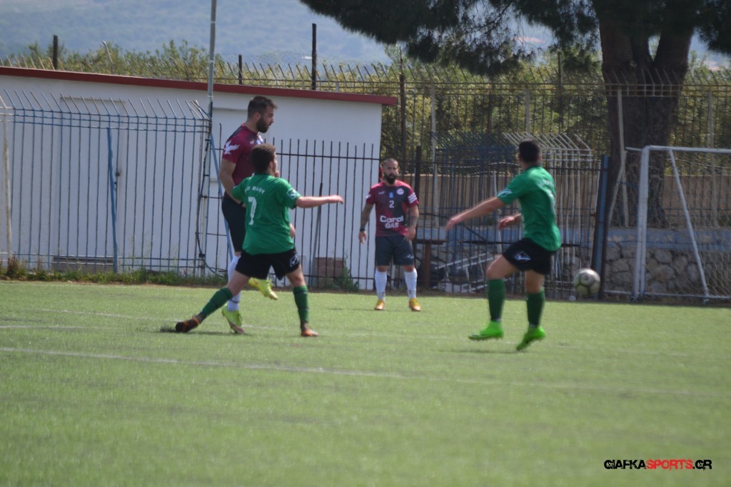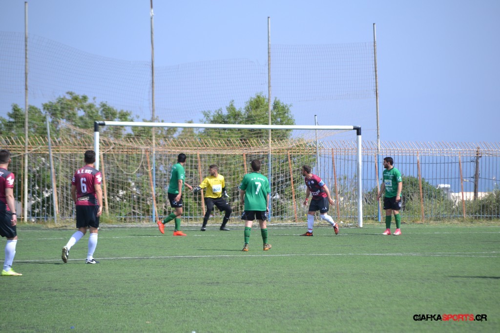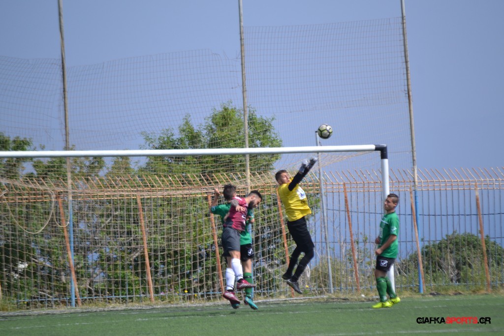 Η Α.Ε Κως είχε τον έλεγχο και την κυκλοφορία και στο 32’ ο Βασιλειάδης με το στήθος έσπρωξε την μπάλα στα δίχτυα κάνοντας το 3-0 για την ομάδα του που ήταν το αποτέλεσμα του πρώτου ημιχρόνου.
