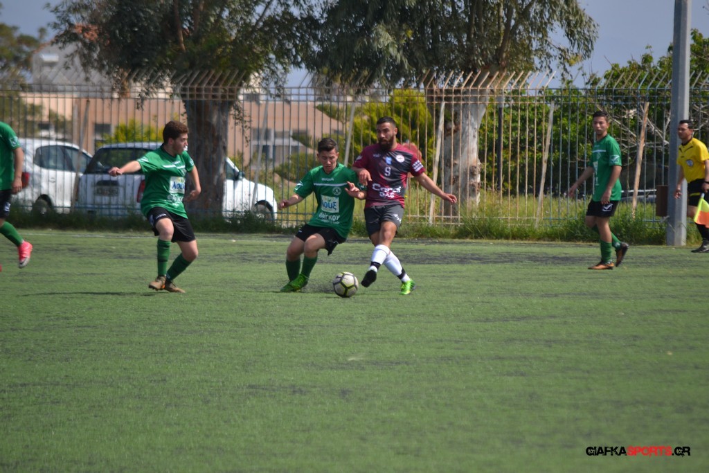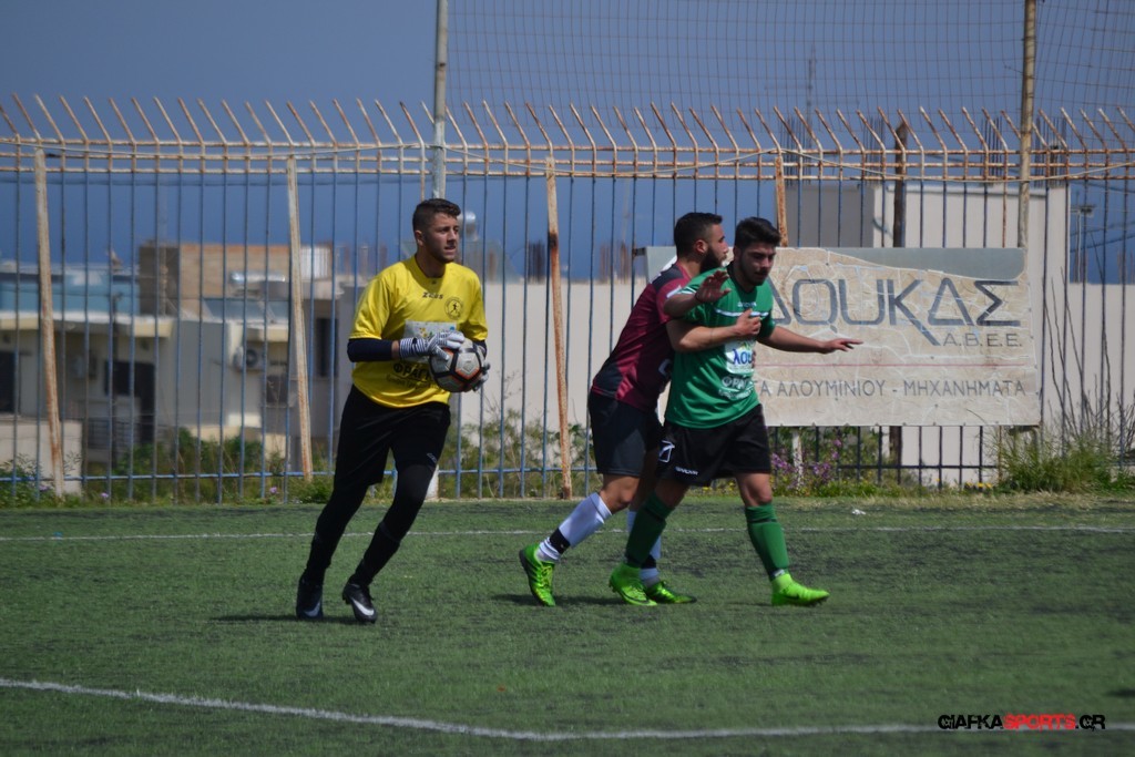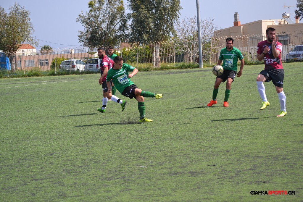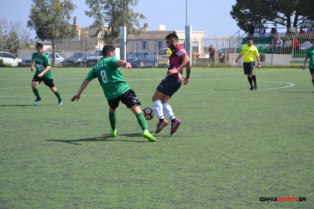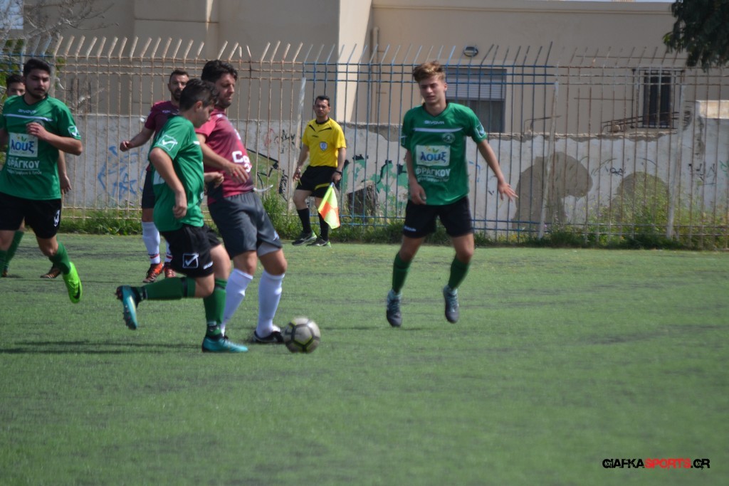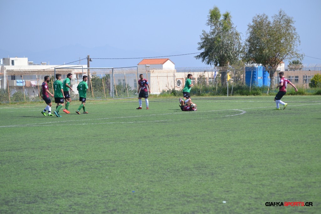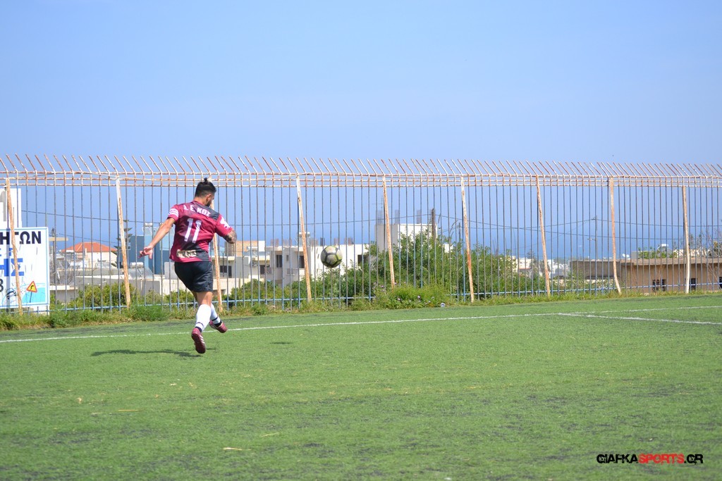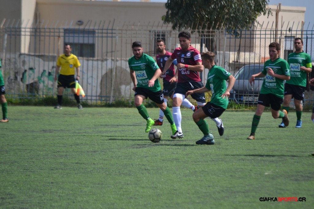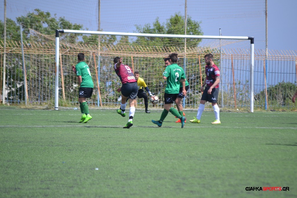 Η Α.Ε Κως είχε τον έλεγχο και την κυκλοφορία και στο 32’ ο Βασιλειάδης με το στήθος έσπρωξε την μπάλα στα δίχτυα κάνοντας το 3-0 για την ομάδα του που ήταν το αποτέλεσμα του πρώτου ημιχρόνου.
