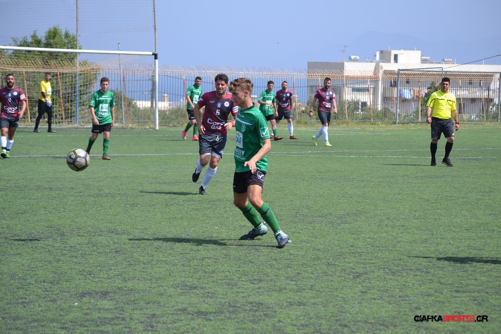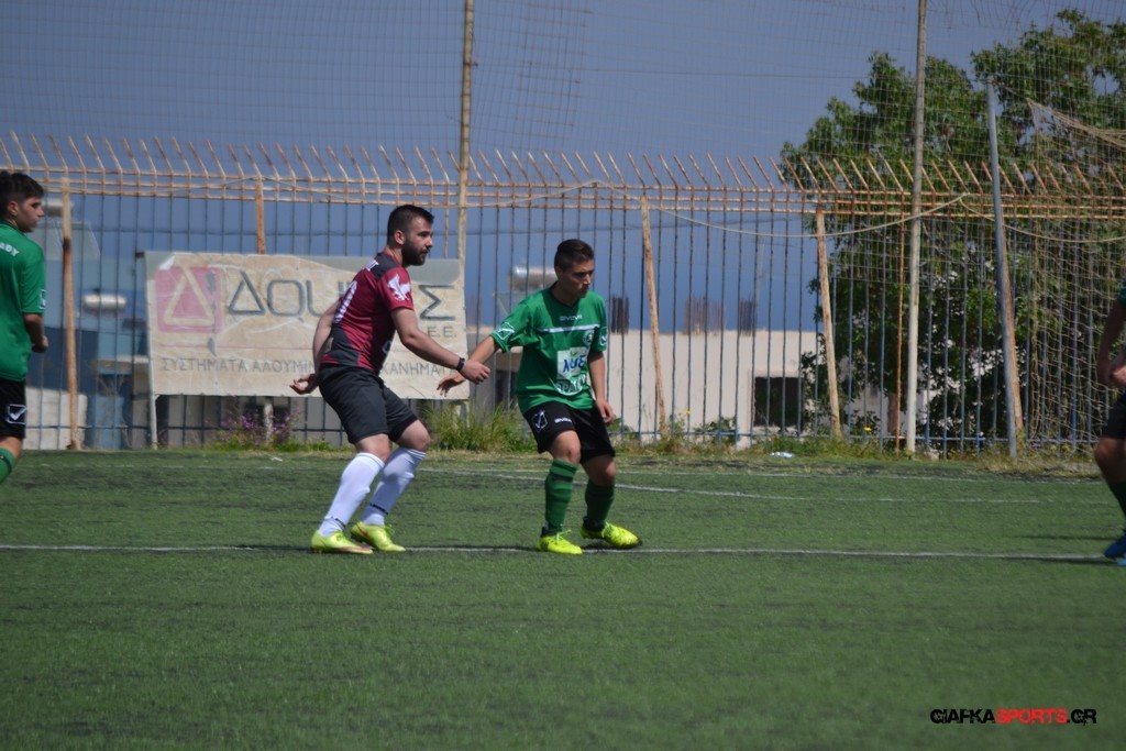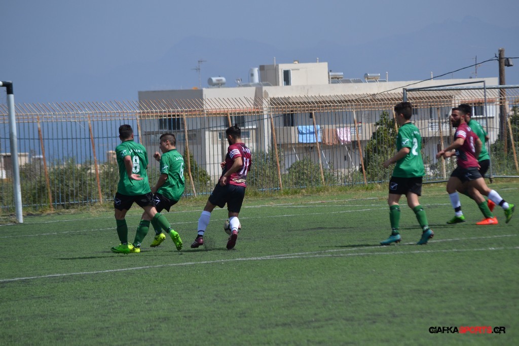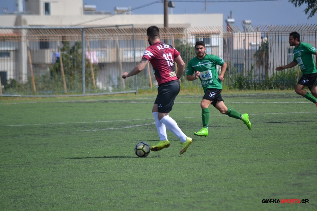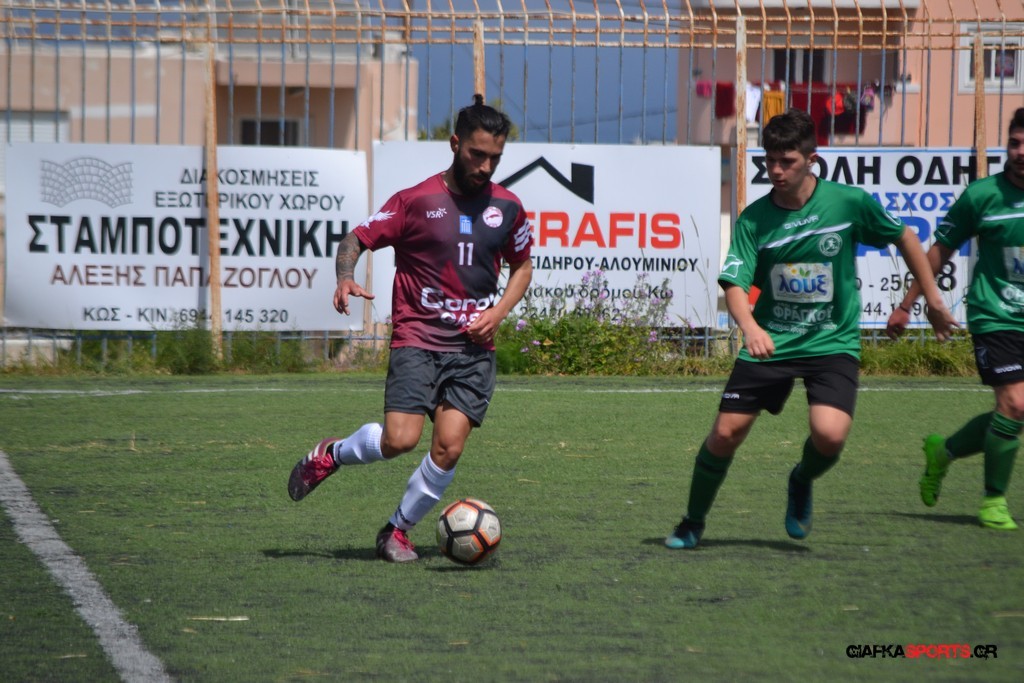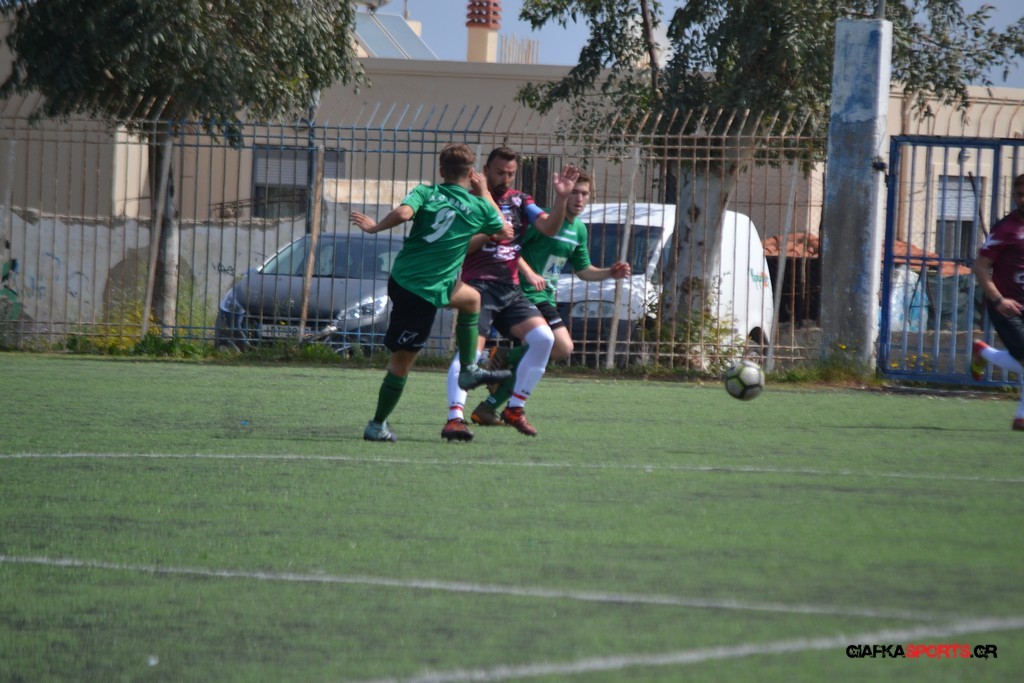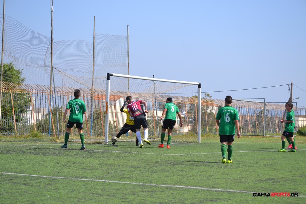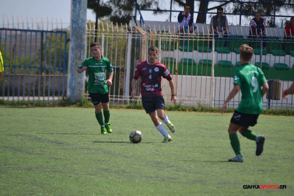 Η Α.Ε Κως είχε τον έλεγχο και την κυκλοφορία και στο 32’ ο Βασιλειάδης με το στήθος έσπρωξε την μπάλα στα δίχτυα κάνοντας το 3-0 για την ομάδα του που ήταν το αποτέλεσμα του πρώτου ημιχρόνου.