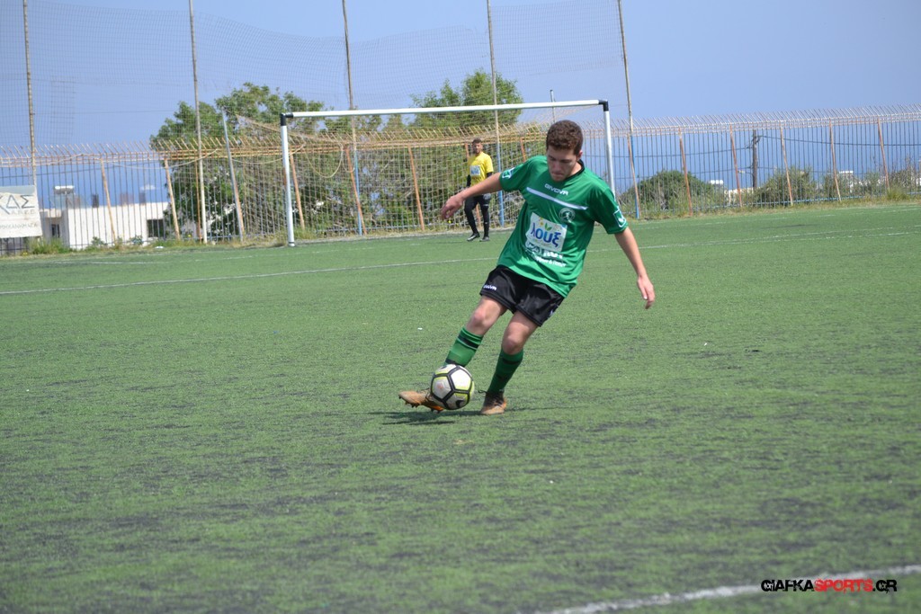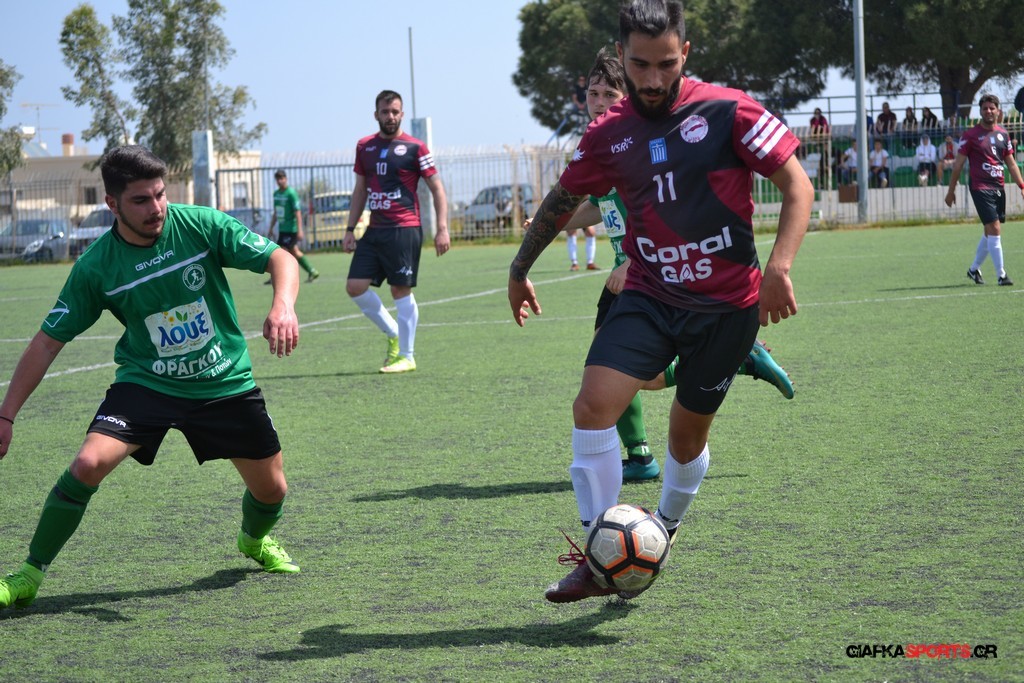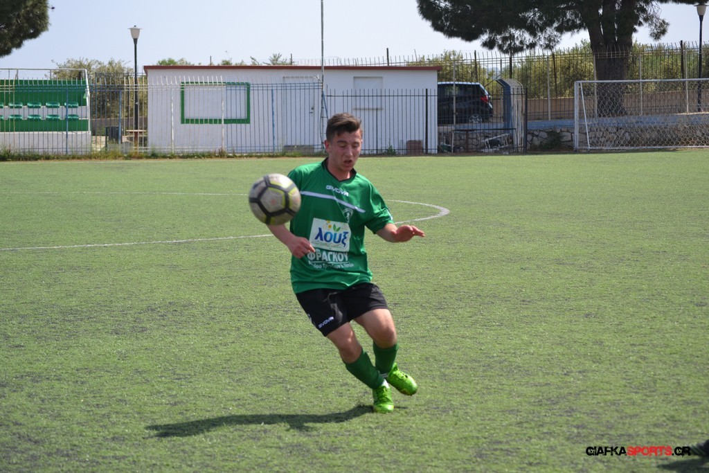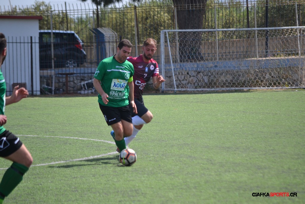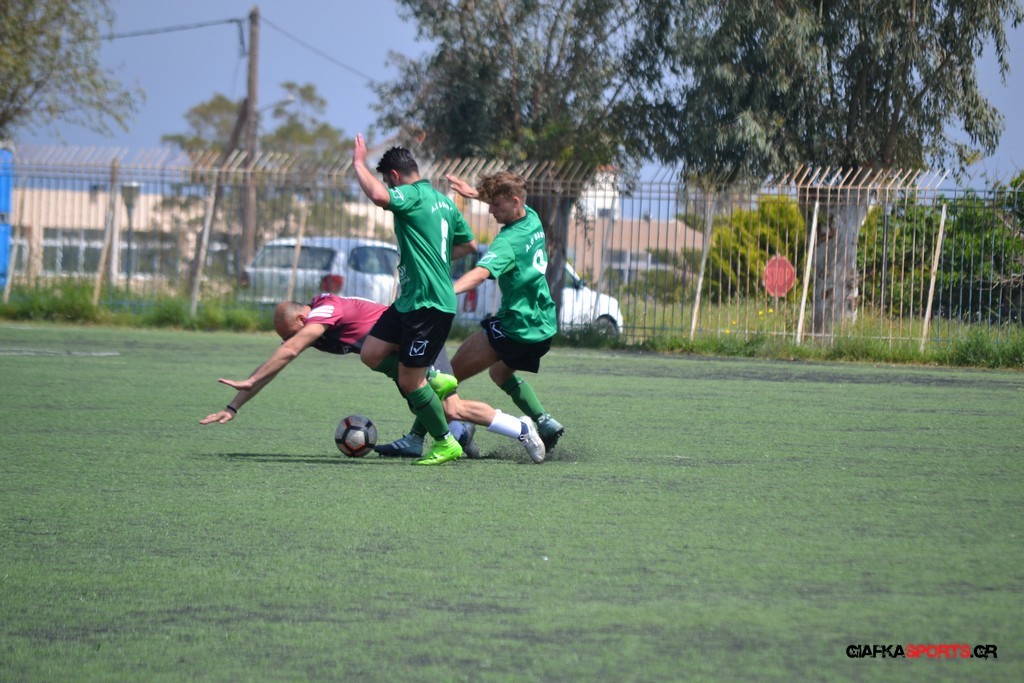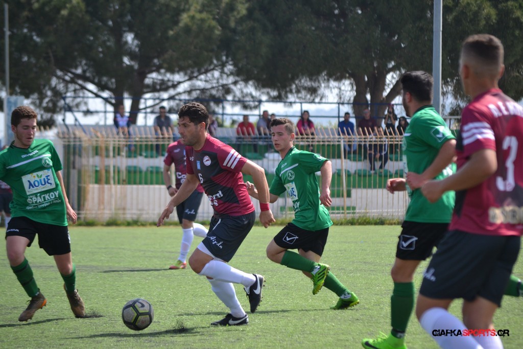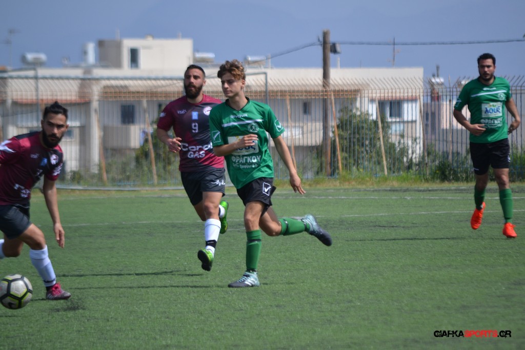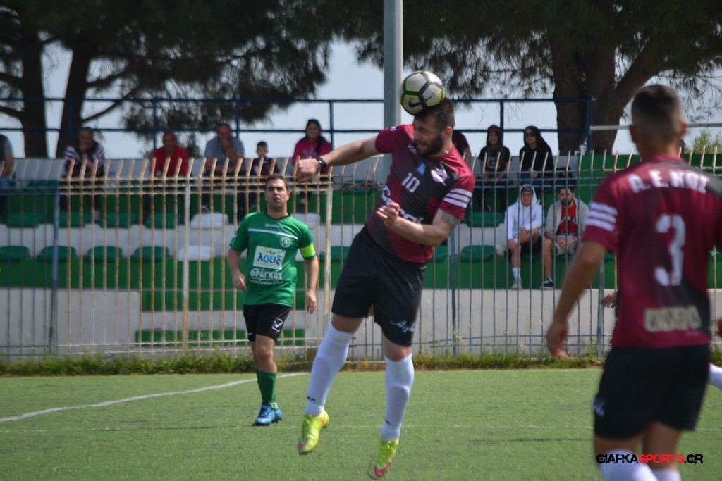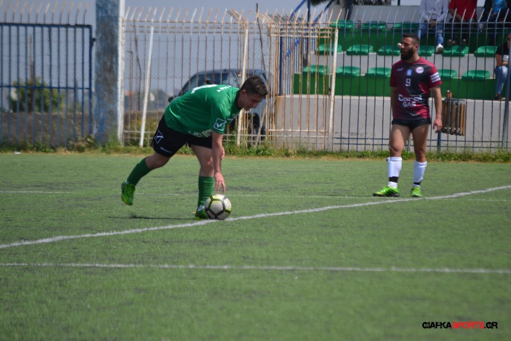 Η Α.Ε Κως είχε τον έλεγχο και την κυκλοφορία και στο 32’ ο Βασιλειάδης με το στήθος έσπρωξε την μπάλα στα δίχτυα κάνοντας το 3-0 για την ομάδα του που ήταν το αποτέλεσμα του πρώτου ημιχρόνου.