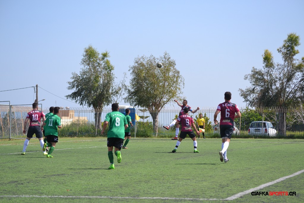 Και επίσημα πρωταθλήτρια στην Β’ κατηγορία του Ομίλου νήσων είναι η Α.Ε Κως που επικράτησε με 8-0 του Α.Ο Βαθύ και επιστρέφει μετά από 6 χρόνια στην Α’ κατηγορία Δωδεκανήσου. Γιώργος Κεφαλιανός (3), Βασιλειάδης (3), Ζαίμι και Οχτάρας ήταν οι σκόρερ των «βυσσινί».
