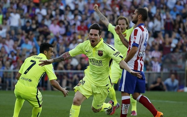 Με γκολ του Λιονέλ Μέσι στο 65ο λεπτό, η Μπαρτσελόνα νίκησε στο «Βιθέντε Καλντερόν» με 1-0 την Ατλέτικο Μαδρίτης και στέφθηκε πρωταθλήτρια Ισπανίας για το 2015 παίρνοντας τη «σκυτάλη» από τους «ροχιμπλάνκος».