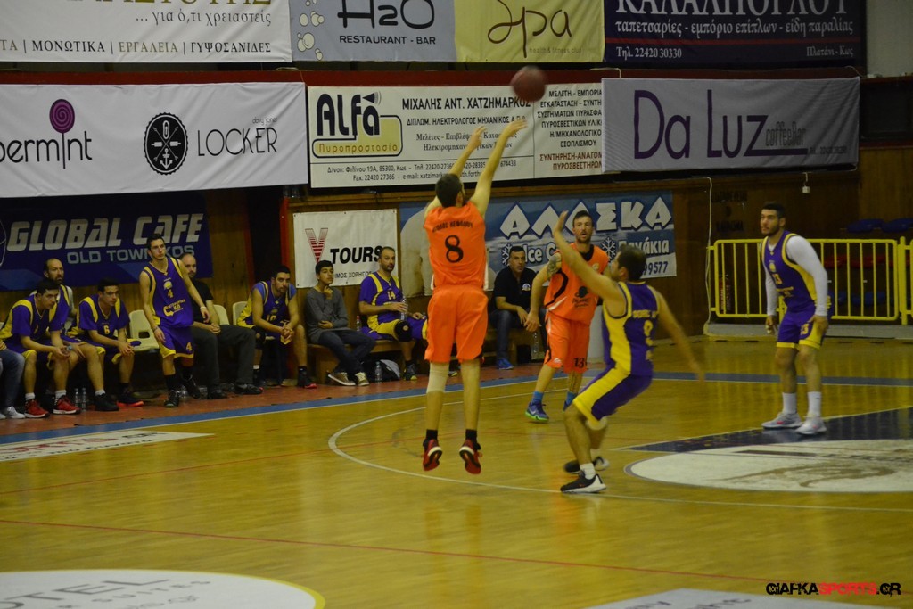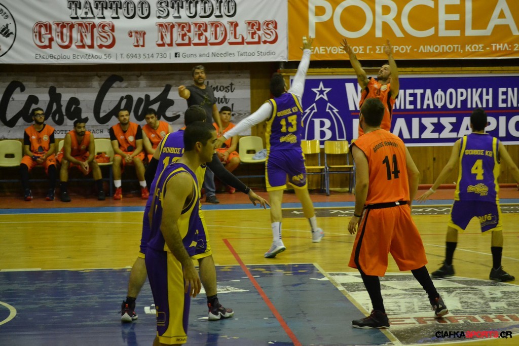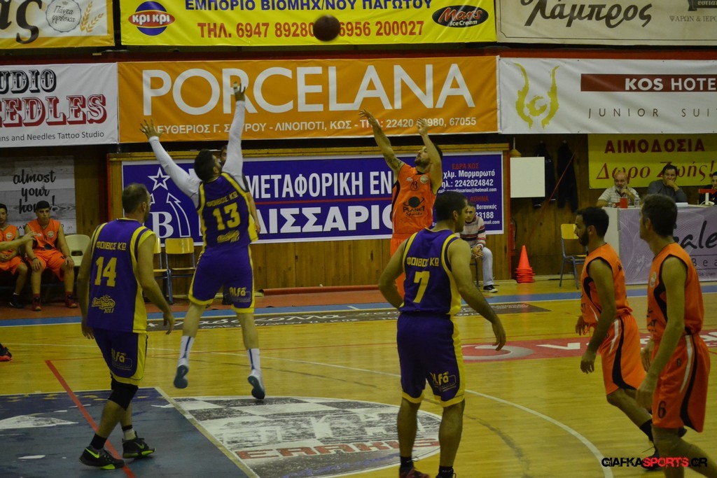 Την πρώτη του νίκη στον όμιλο νήσων του ανδρικού πρωταθλήματος πέτυχε ο Αίολος Κεφάλου, ο οποίος κέρδισε με 58-49 τον Φοίβο Κω. Η ομάδα του Δημήτρη Μαράγκα βελτιώθηκε στο β’ ημίχρονο και βρίσκοντας λύσεις από τους Παπαντωνίου Ε. και Σάζαλη Δ., πήρε το ροζ φύλλο αγώνα. Ο Φοίβος στάθηκε πολύ καλά στο σημερινό παιχνίδι και έβαλε δύσκολα στην ομάδα του Δημήτρη Μαράγκα. Στο β’ ημίχρονο όμως η εμπειρία των δύο αθλητών και σε συνδυασμό με την αστοχία των γηπεδούχων, ήταν στοιχεία που έγειραν την πλάστιγγα προς το μέρος του Αιόλου, που έκανε «σεφτέ» για τη φετινή σεζόν.