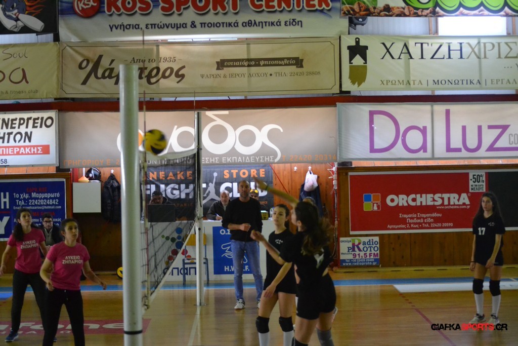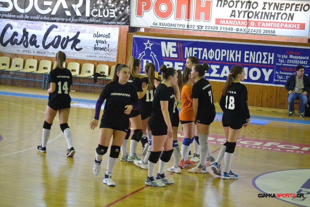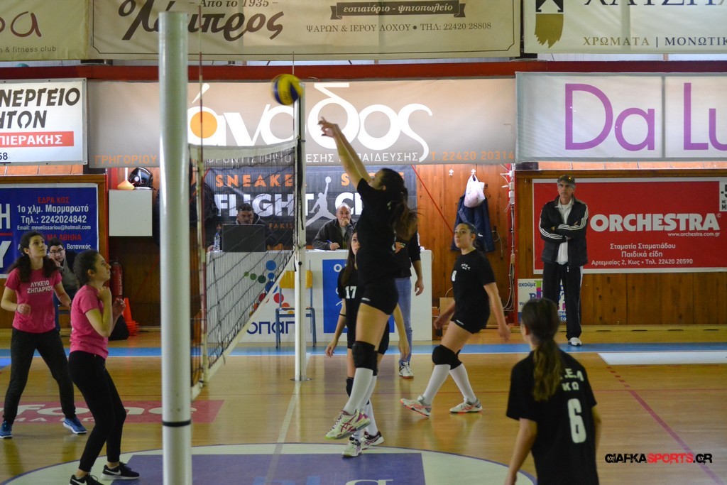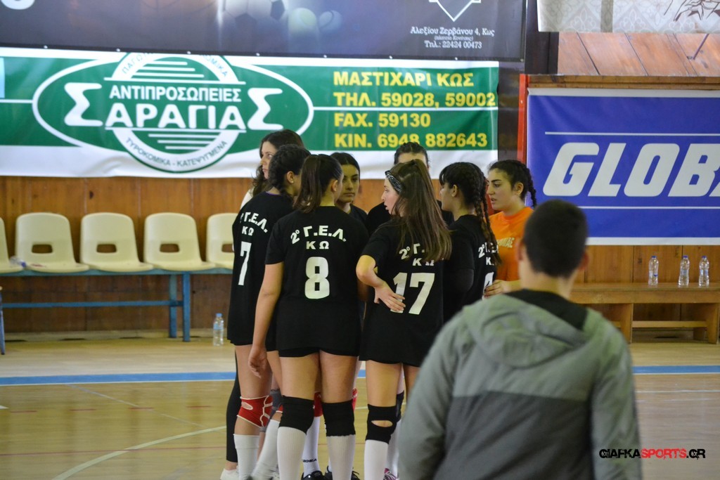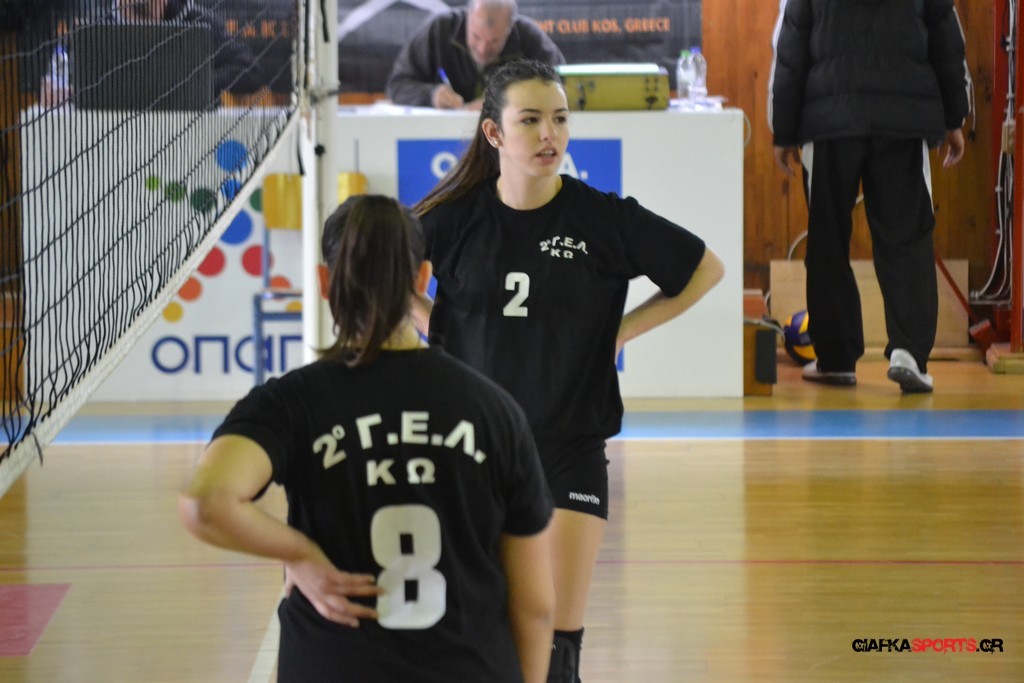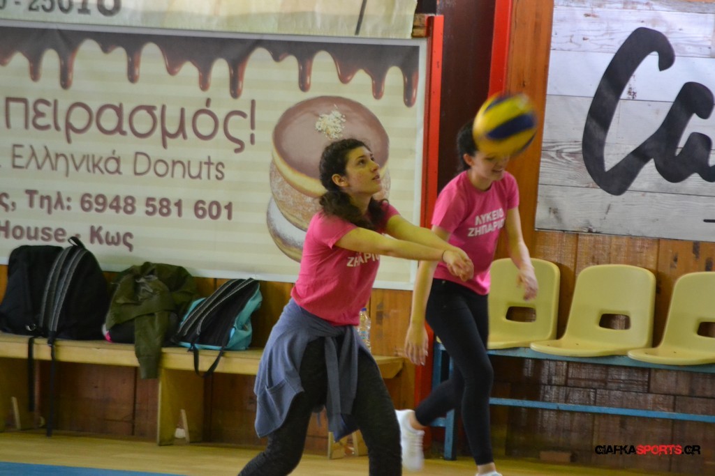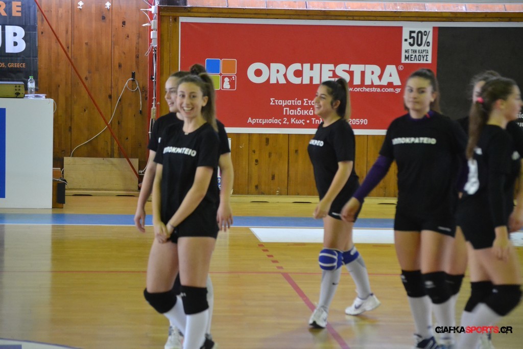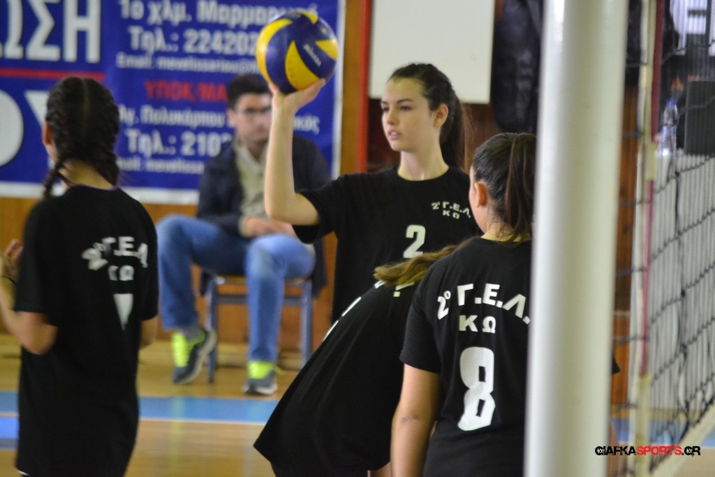 Την πρώτη θέση στους σχολικούς αγώνες βόλει κοριτσιών κατέκτησε η ομάδα του Ιπποκρατείου Λυκείου Κω αφού επικράτησε στον μεγάλο τελικό με 2-0 σετ του 2ου Λυκείου (25-17, 25-19). Στον ημιτελικό το 2ο Λύκειο είχε κερδίσει με 2-0 σετ το Ζηπάρι (25-9, 25-10) αλλά στον τελικό δεν είχε τις δυνάμεις για να παλέψει απέναντι στο 1ο Λύκειο και γνώρισε την ήττα.