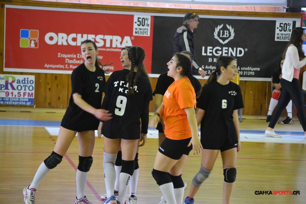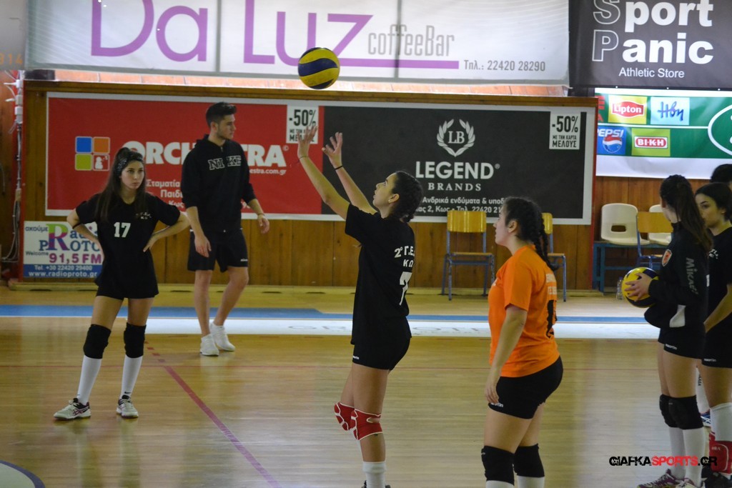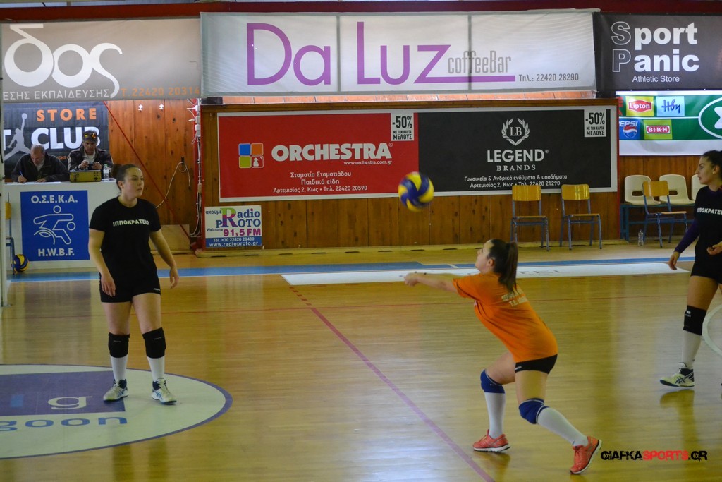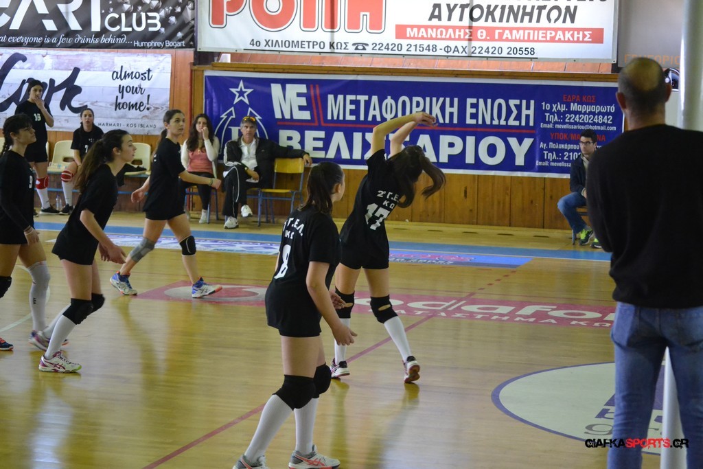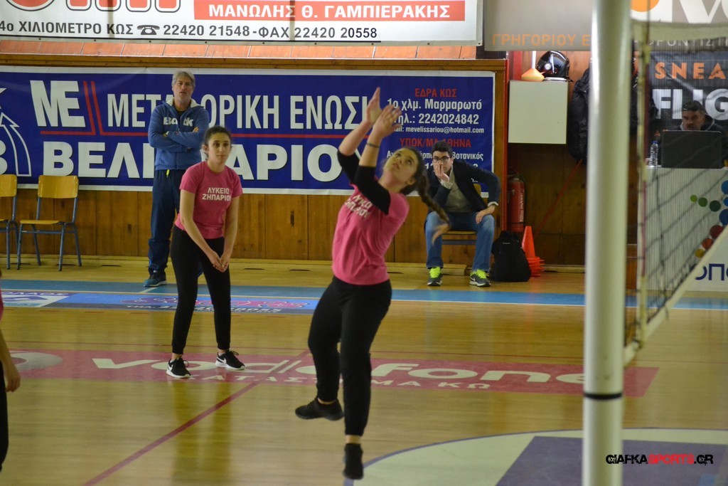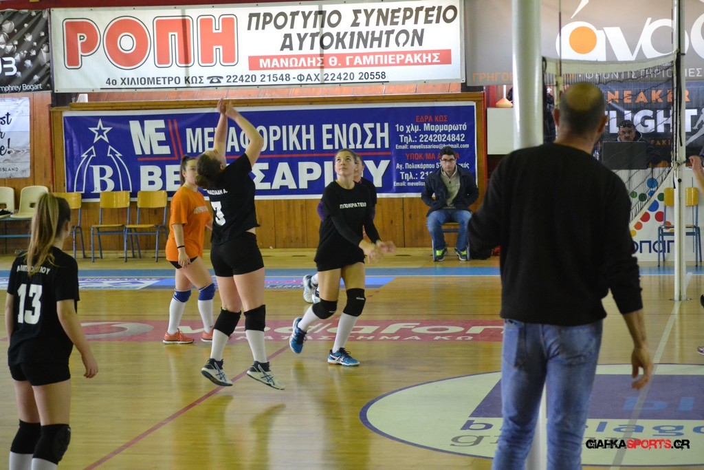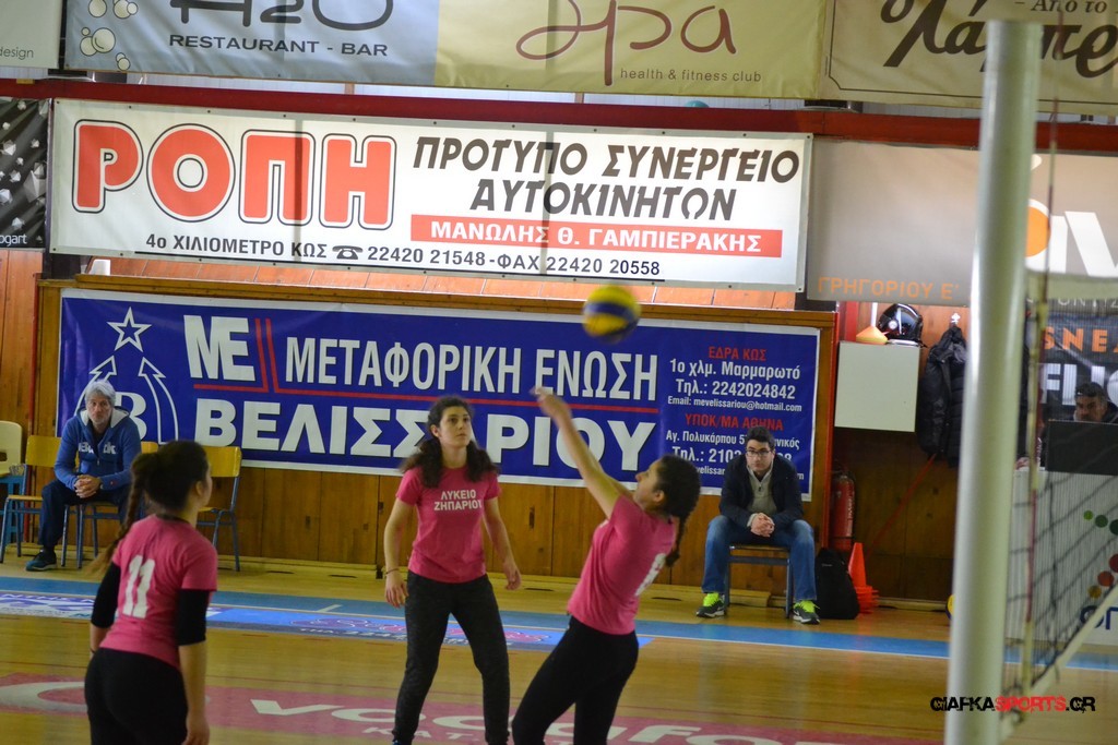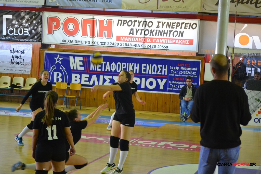Την πρώτη θέση στους σχολικούς αγώνες βόλει κοριτσιών κατέκτησε η ομάδα του Ιπποκρατείου Λυκείου Κω αφού επικράτησε στον μεγάλο τελικό με 2-0 σετ του 2ου Λυκείου (25-17, 25-19). Στον ημιτελικό το 2ο Λύκειο είχε κερδίσει με 2-0 σετ το Ζηπάρι (25-9, 25-10) αλλά στον τελικό δεν είχε τις δυνάμεις για να παλέψει απέναντι στο 1ο Λύκειο και γνώρισε την ήττα.