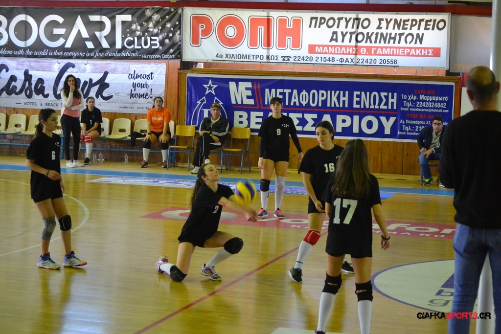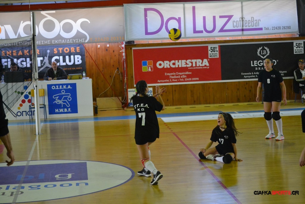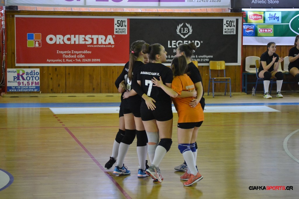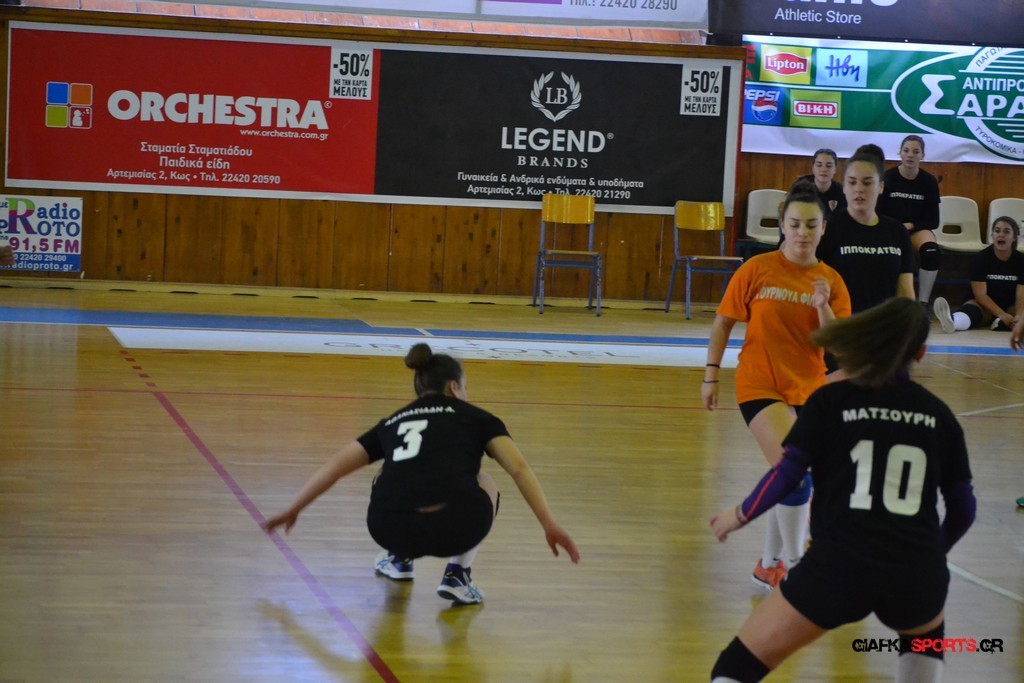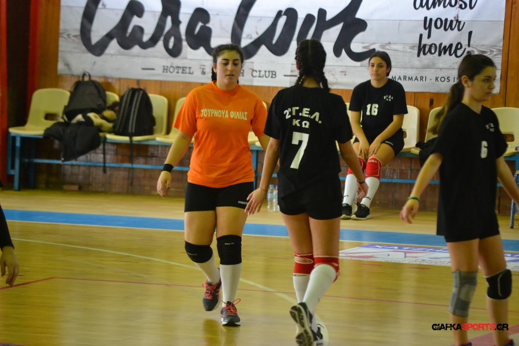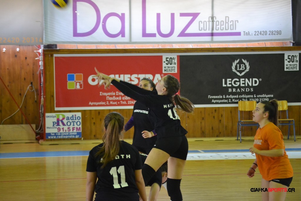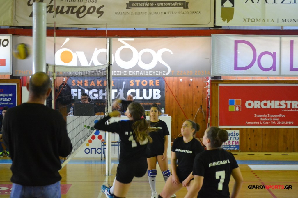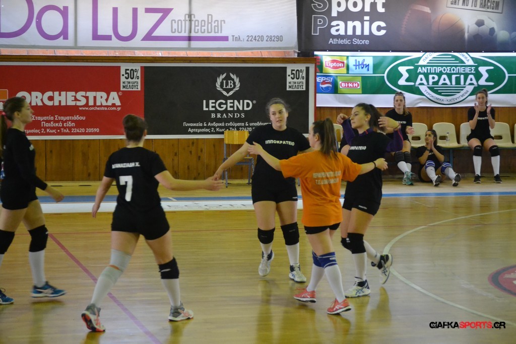 Την πρώτη θέση στους σχολικούς αγώνες βόλει κοριτσιών κατέκτησε η ομάδα του Ιπποκρατείου Λυκείου Κω αφού επικράτησε στον μεγάλο τελικό με 2-0 σετ του 2ου Λυκείου (25-17, 25-19). Στον ημιτελικό το 2ο Λύκειο είχε κερδίσει με 2-0 σετ το Ζηπάρι (25-9, 25-10) αλλά στον τελικό δεν είχε τις δυνάμεις για να παλέψει απέναντι στο 1ο Λύκειο και γνώρισε την ήττα.