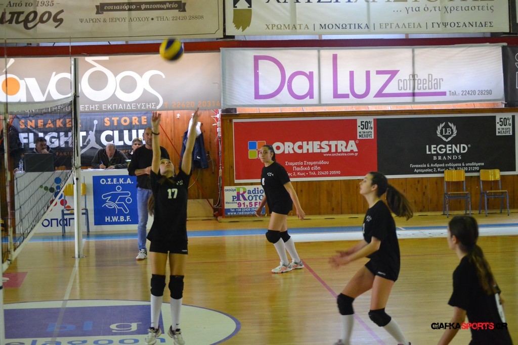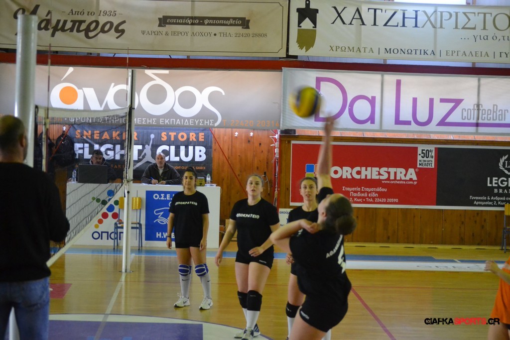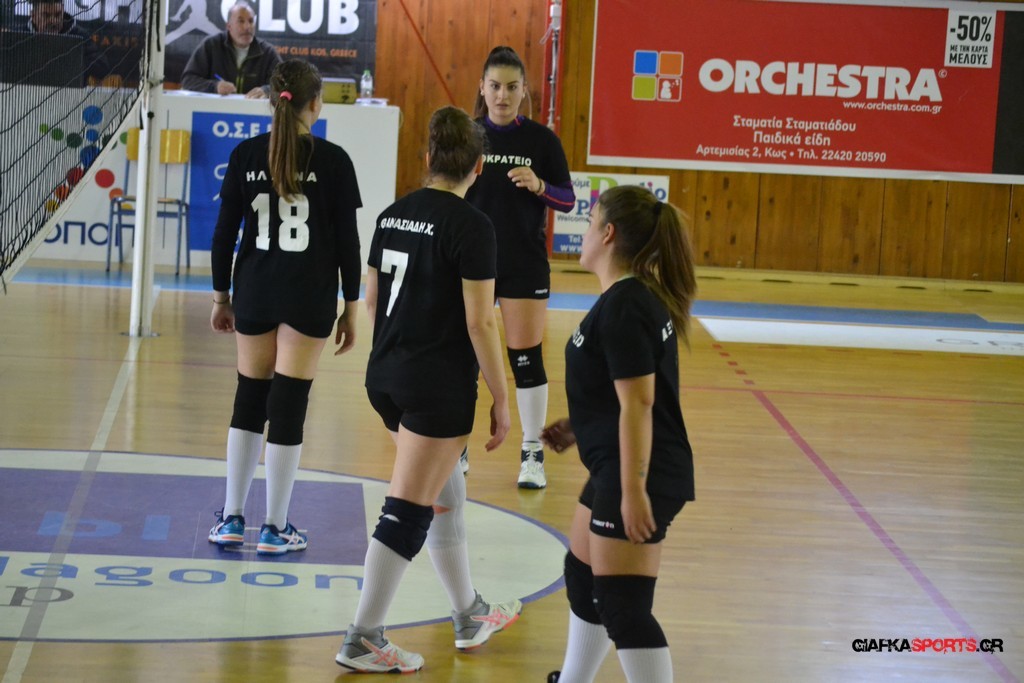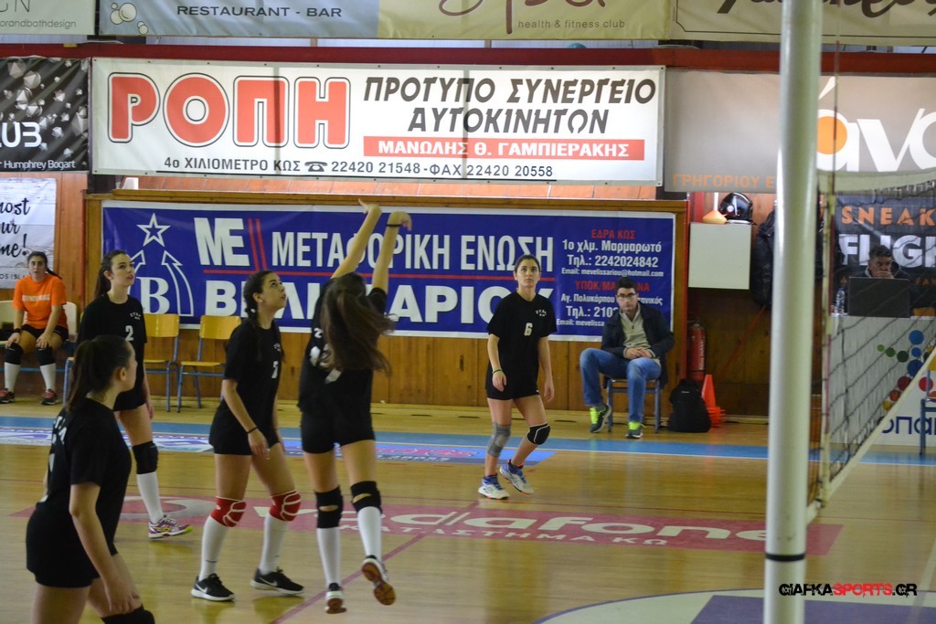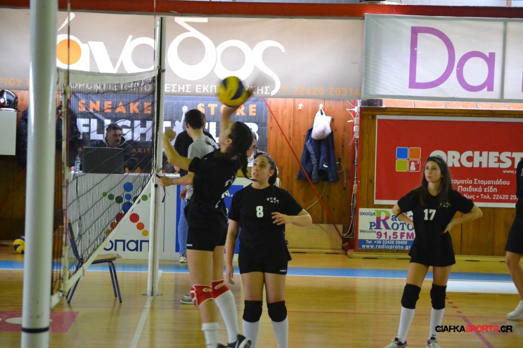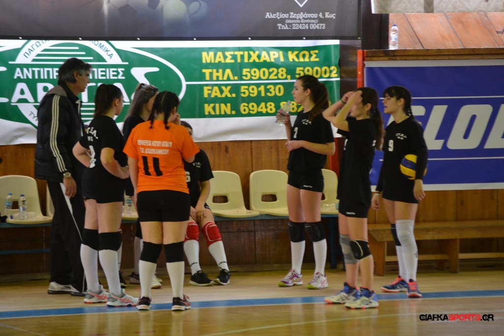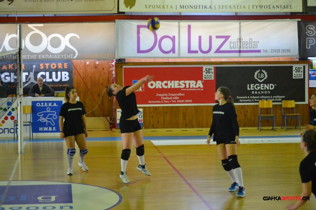 Την πρώτη θέση στους σχολικούς αγώνες βόλει κοριτσιών κατέκτησε η ομάδα του Ιπποκρατείου Λυκείου Κω αφού επικράτησε στον μεγάλο τελικό με 2-0 σετ του 2ου Λυκείου (25-17, 25-19). Στον ημιτελικό το 2ο Λύκειο είχε κερδίσει με 2-0 σετ το Ζηπάρι (25-9, 25-10) αλλά στον τελικό δεν είχε τις δυνάμεις για να παλέψει απέναντι στο 1ο Λύκειο και γνώρισε την ήττα.