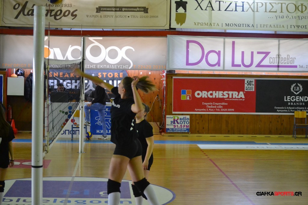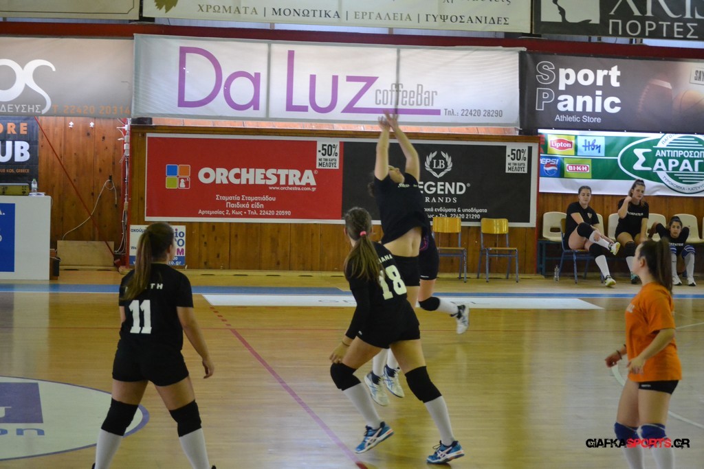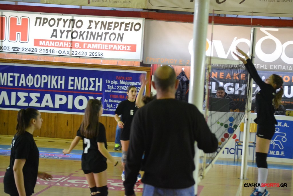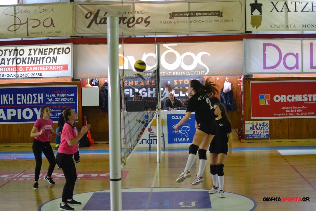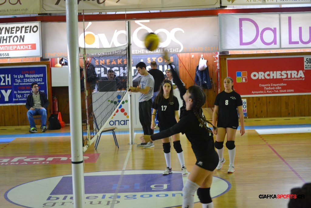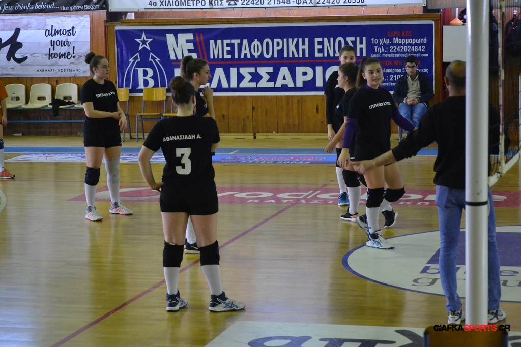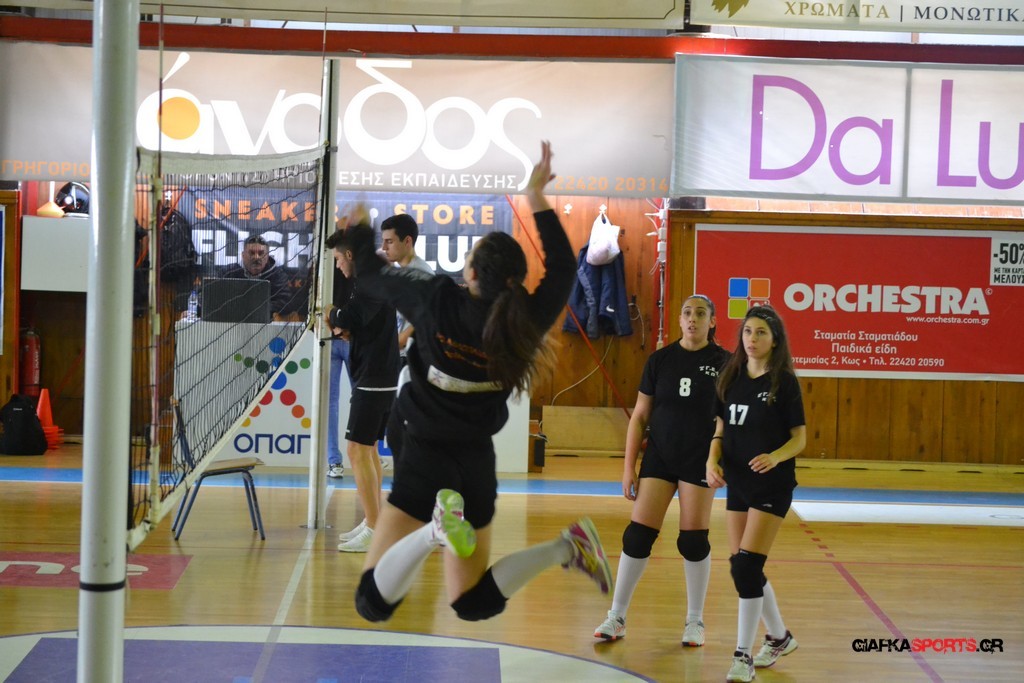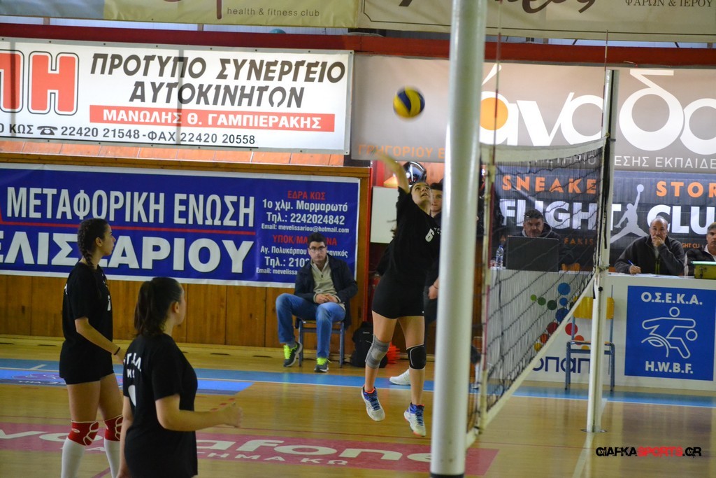 Την πρώτη θέση στους σχολικούς αγώνες βόλει κοριτσιών κατέκτησε η ομάδα του Ιπποκρατείου Λυκείου Κω αφού επικράτησε στον μεγάλο τελικό με 2-0 σετ του 2ου Λυκείου (25-17, 25-19). Στον ημιτελικό το 2ο Λύκειο είχε κερδίσει με 2-0 σετ το Ζηπάρι (25-9, 25-10) αλλά στον τελικό δεν είχε τις δυνάμεις για να παλέψει απέναντι στο 1ο Λύκειο και γνώρισε την ήττα.