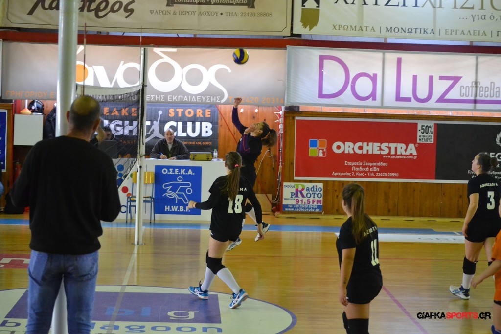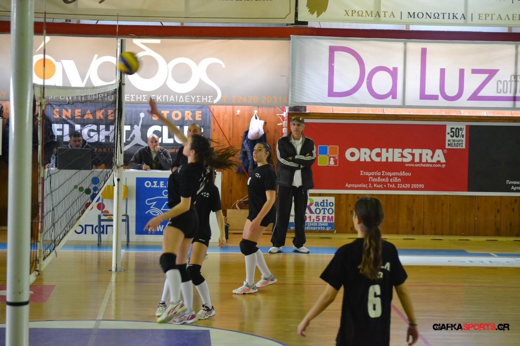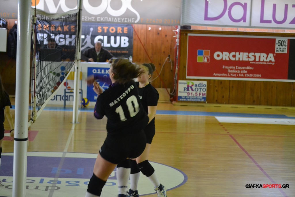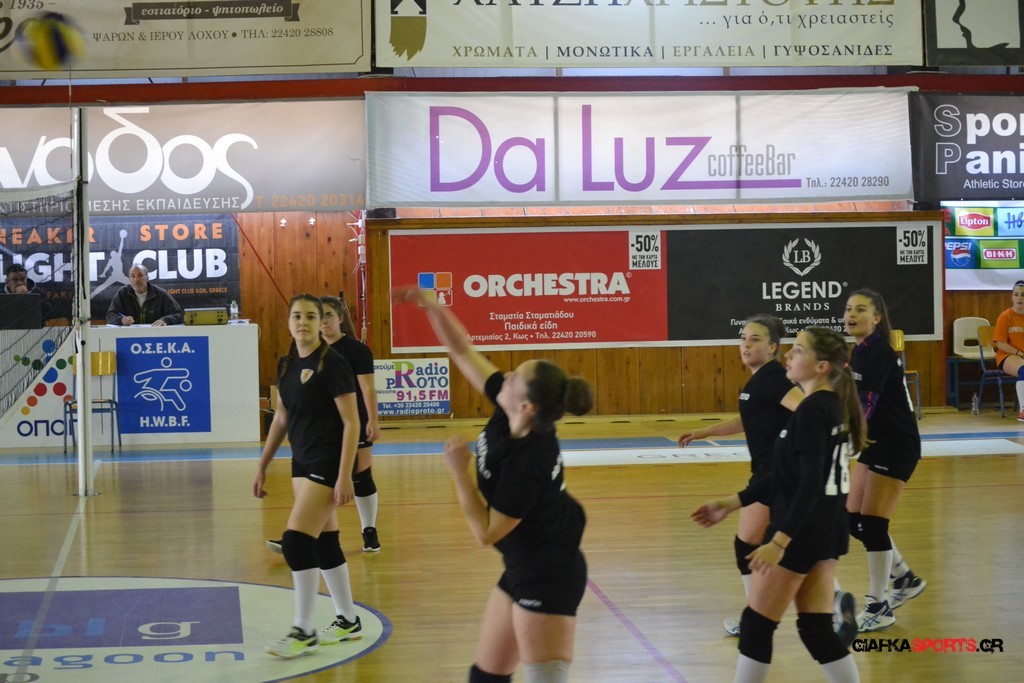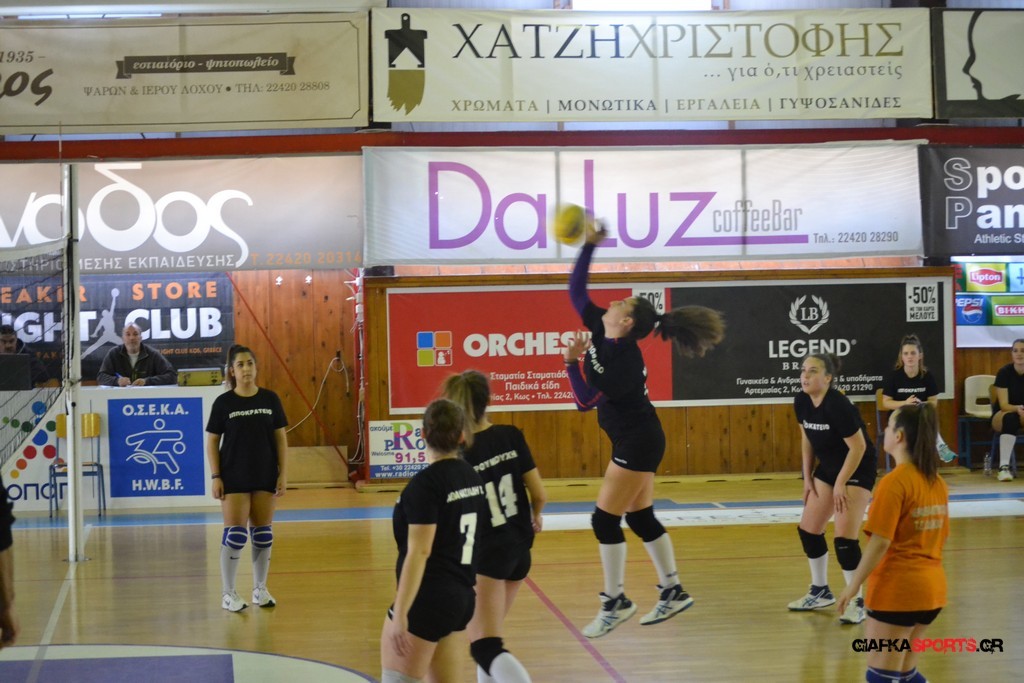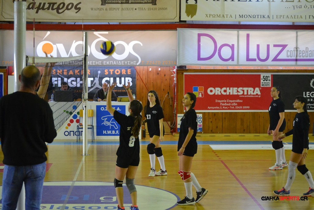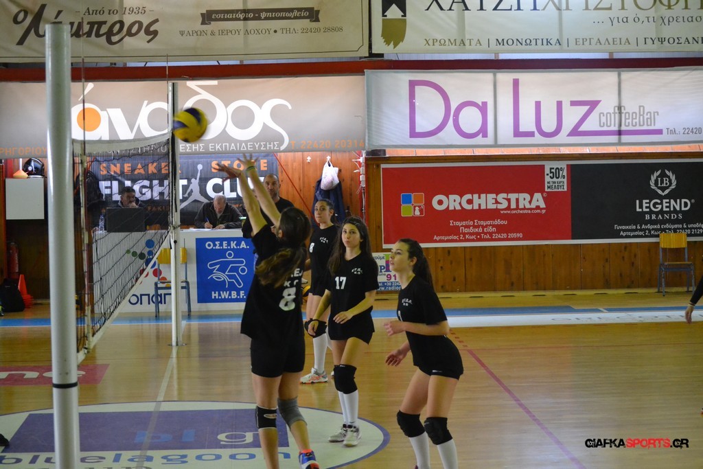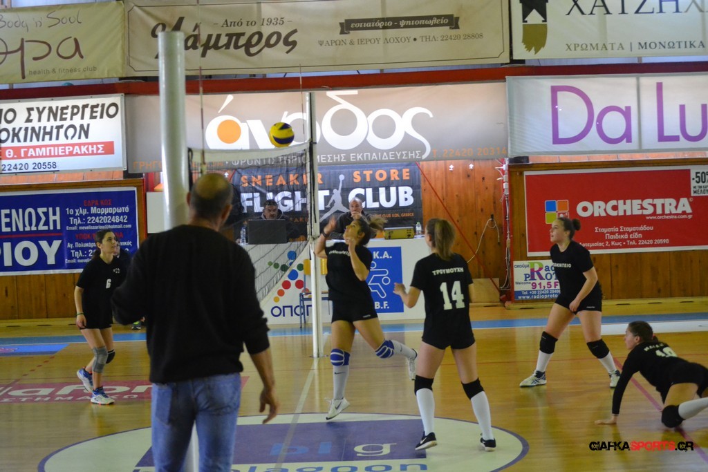 Την πρώτη θέση στους σχολικούς αγώνες βόλει κοριτσιών κατέκτησε η ομάδα του Ιπποκρατείου Λυκείου Κω αφού επικράτησε στον μεγάλο τελικό με 2-0 σετ του 2ου Λυκείου (25-17, 25-19). Στον ημιτελικό το 2ο Λύκειο είχε κερδίσει με 2-0 σετ το Ζηπάρι (25-9, 25-10) αλλά στον τελικό δεν είχε τις δυνάμεις για να παλέψει απέναντι στο 1ο Λύκειο και γνώρισε την ήττα.