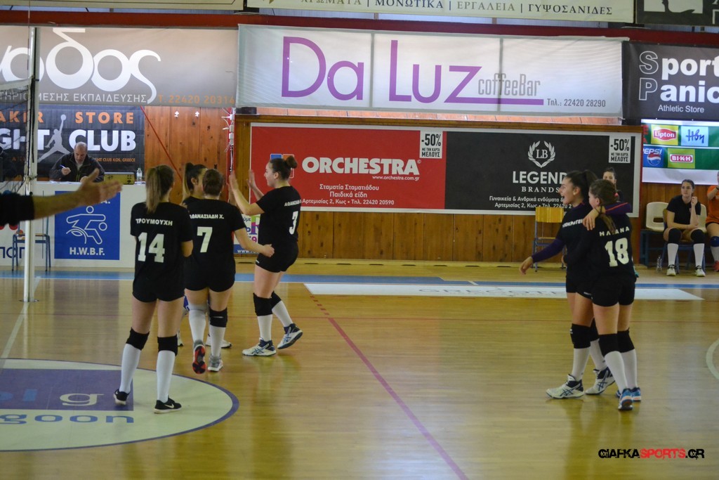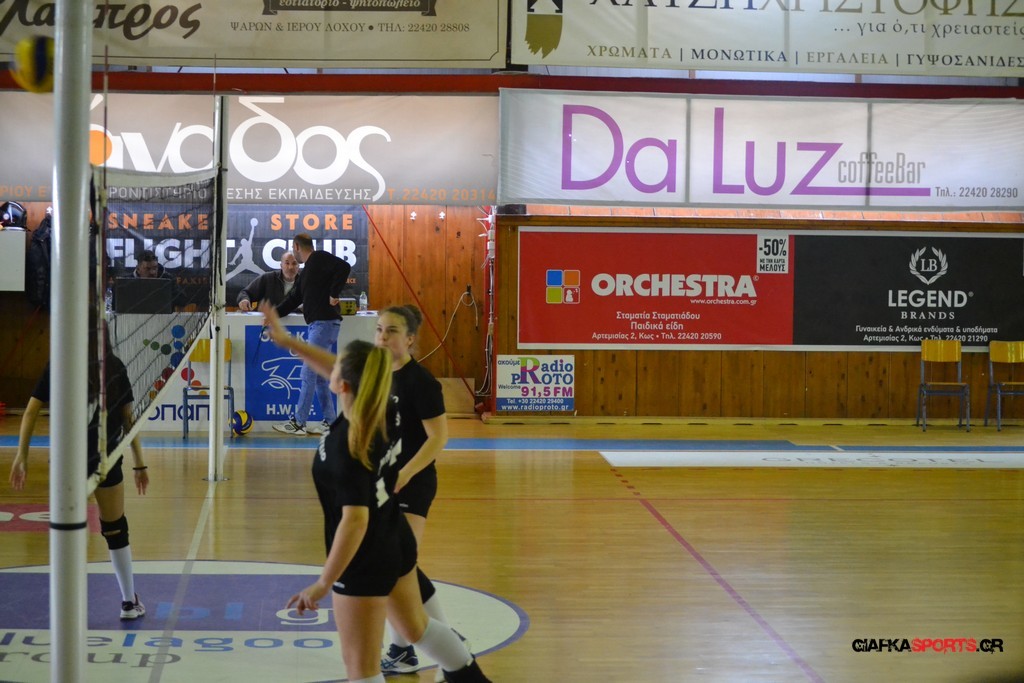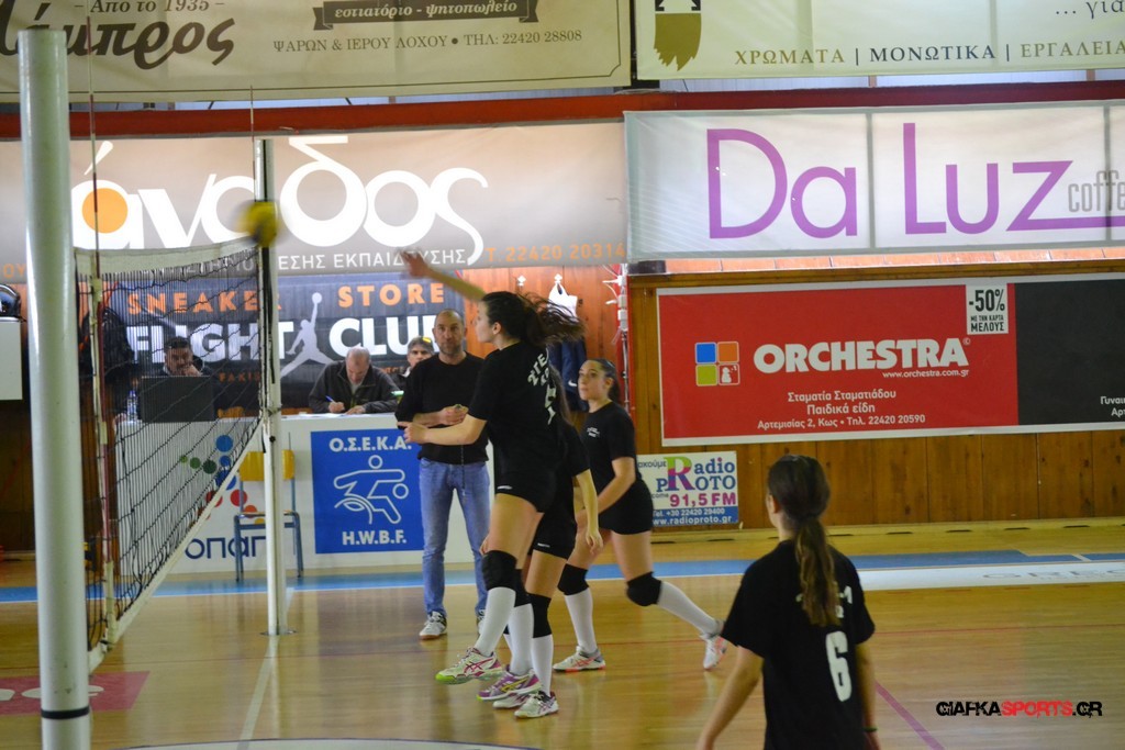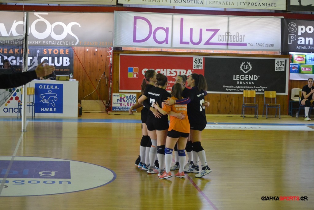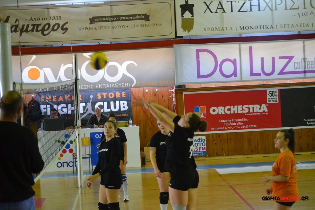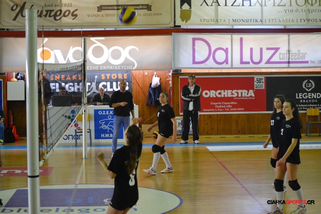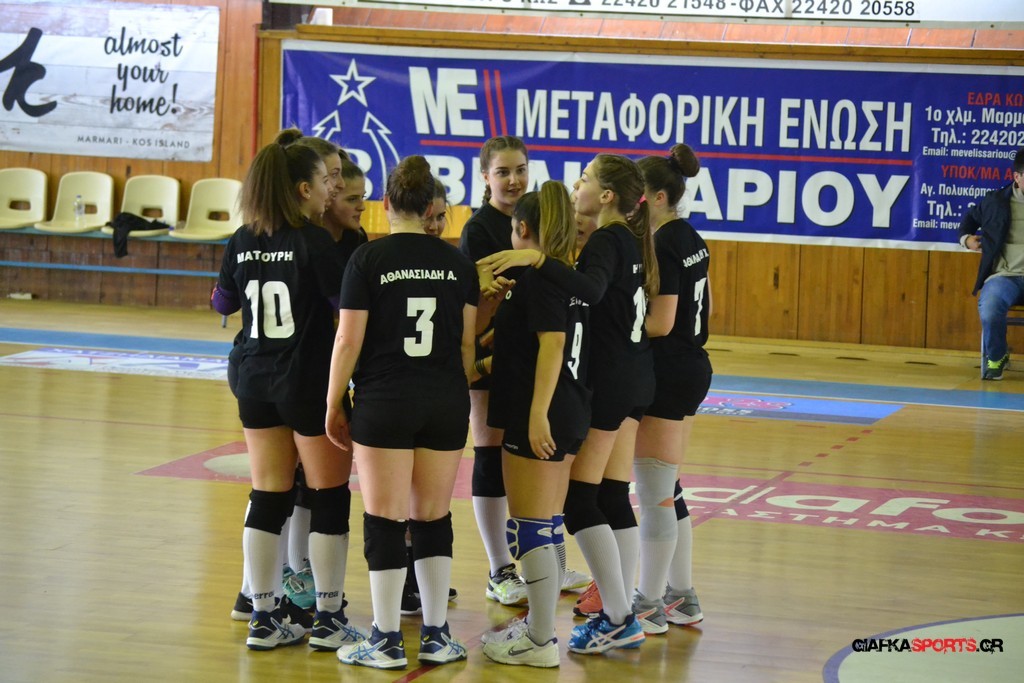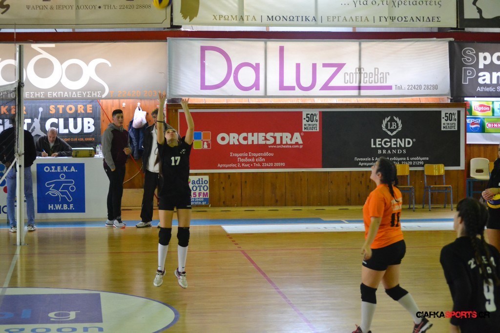 Την πρώτη θέση στους σχολικούς αγώνες βόλει κοριτσιών κατέκτησε η ομάδα του Ιπποκρατείου Λυκείου Κω αφού επικράτησε στον μεγάλο τελικό με 2-0 σετ του 2ου Λυκείου (25-17, 25-19). Στον ημιτελικό το 2ο Λύκειο είχε κερδίσει με 2-0 σετ το Ζηπάρι (25-9, 25-10) αλλά στον τελικό δεν είχε τις δυνάμεις για να παλέψει απέναντι στο 1ο Λύκειο και γνώρισε την ήττα.