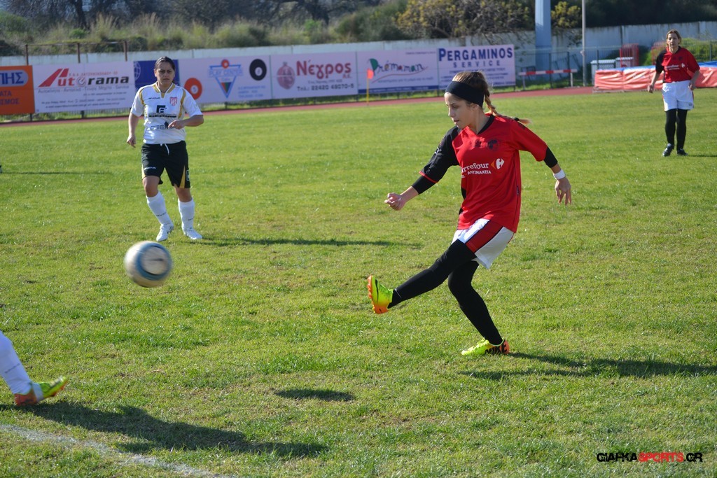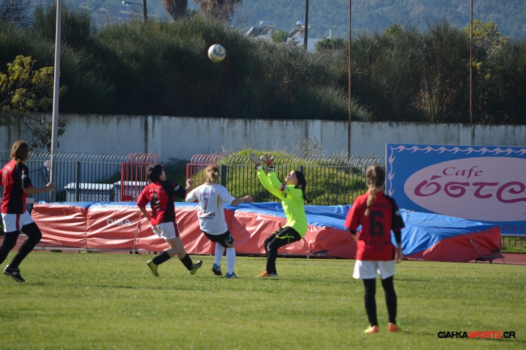 Ο Πήγασος Θριασίου ήταν αυτός που ξεκίνησε δυναμικά το ματς και μόλις στο 2′ απείλησε την εστία της Σταμόγλου ,όταν το σουτ της Καρρίκη τράνταξε το οριζόντιο δοκάρι και πέρασε άουτ.Στο 15′ η Βλάχου (η κορυφαία του ματς) έκανε την ατομική ενέργεια από την μπαλιά στην πλάτη της άμυνας του Φιλίνος,το σουτ της όμως πέρασε λίγο έξω από δεξί κάθετο δοκάρι της Σταμόγλου.