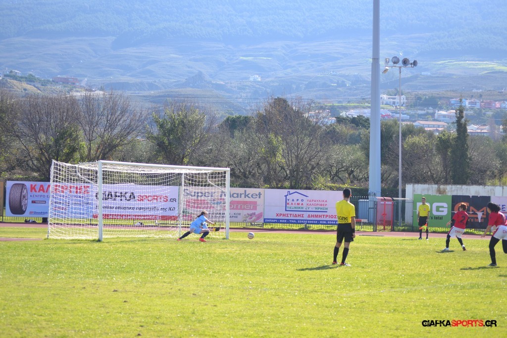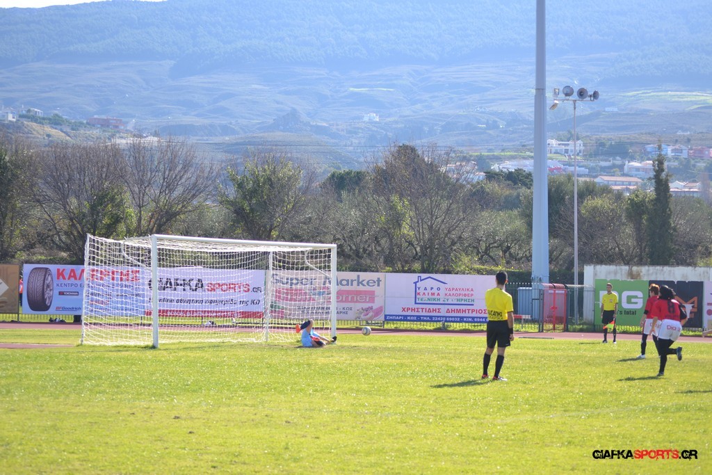 Στο 31′ ο Κωακός Φιλίνος κέρδισε πέναλτι με την Νικολοπούλου να εκτελεί την Ψάλτη να αποκρούει στην αριστερή του γωνία,αλλά η ίδια να παίρνει το ”ριμαπάουντ” και να στέλνει την μπάλα στα δίχτυα του Πήγασου Θριασίου για το 1-0.