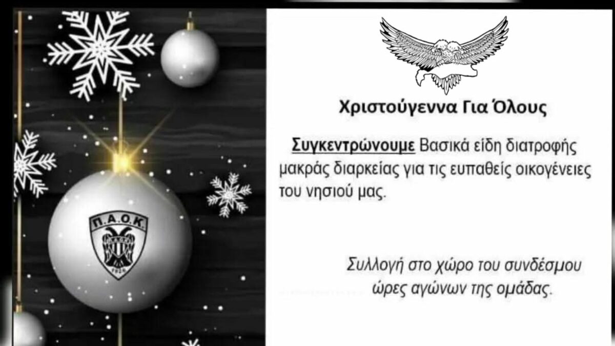 Ο Σύνδεσμος Φιλάθλων ΠΑΟΚ Κω συνεχίζει και φέτος την κοινωνική του δράση, στηρίζοντας έμπρακτα τις οικογένειες του νησιού μας που έχουν ανάγκη.