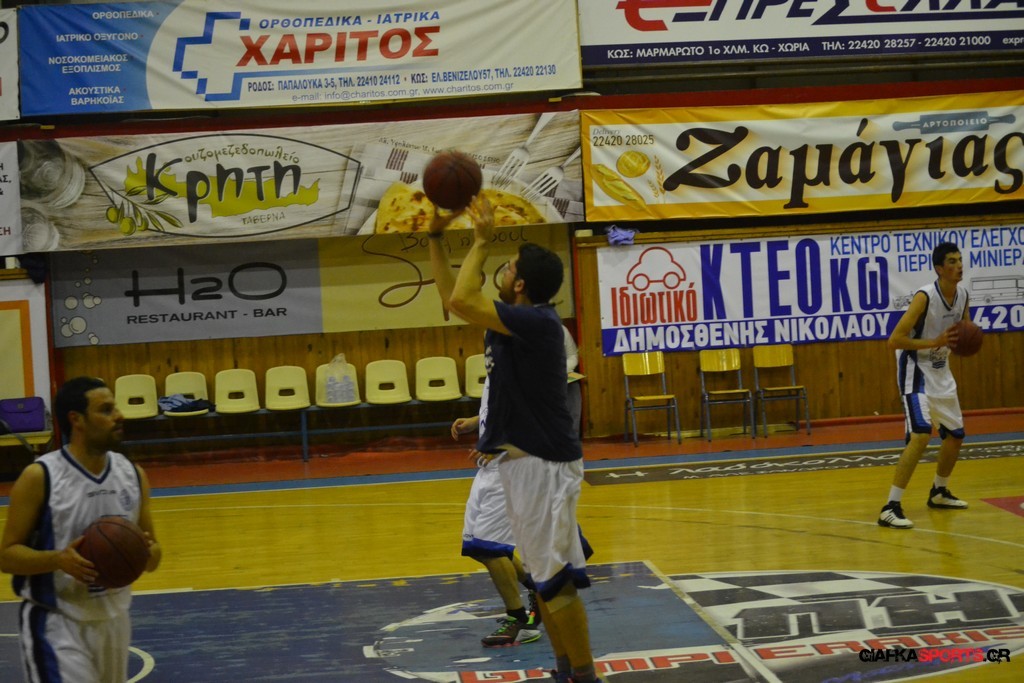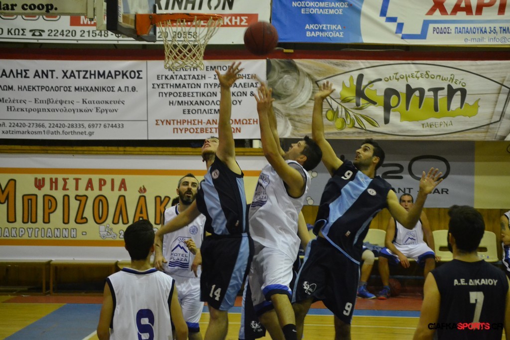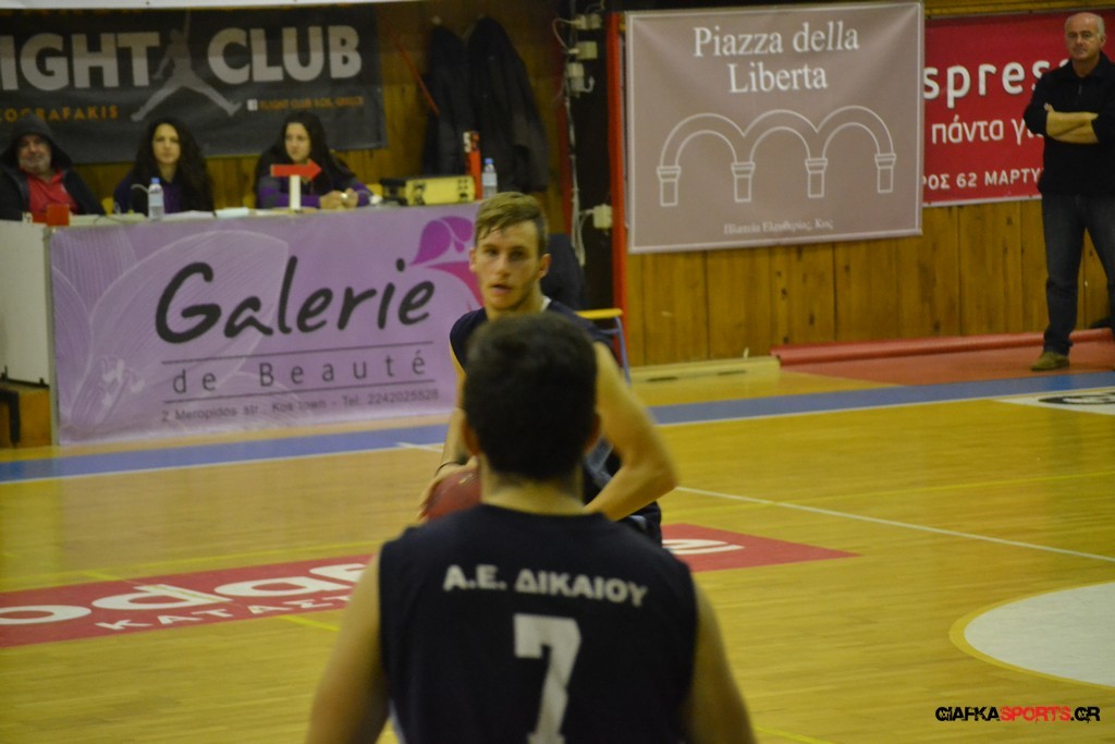 Με τους Τρύπα και Παρβαντώνη να πυροβολούν ασταμάτητα έξω απ’ την γραμμή των 6.75 πετυχαίνοντας συνολικά 11 (!!) τρίποντα η Α.Ε Δικαίου επικράτησε εύκολα του Καλυμνιακού με 94-47 στο πλαίσιο της 4ης αγωνιστικής.