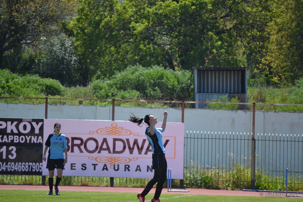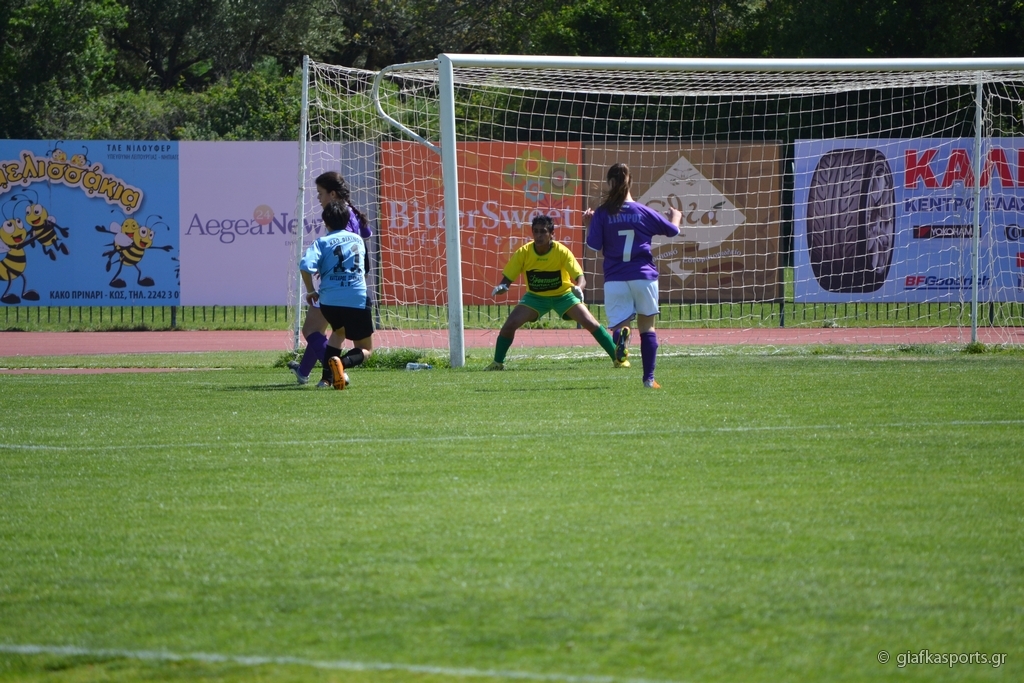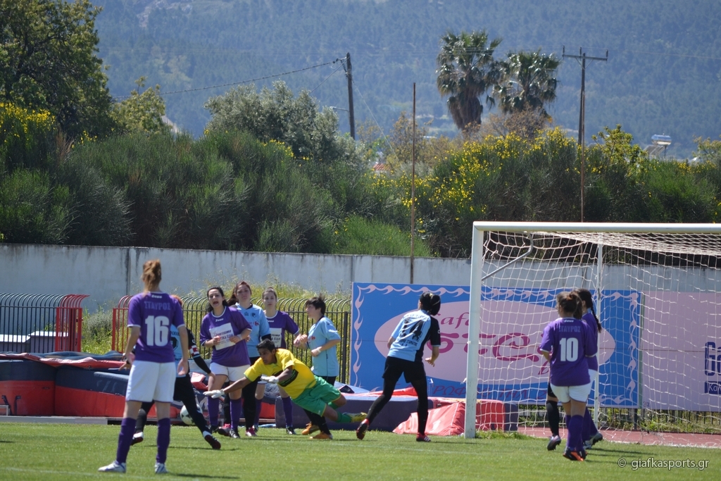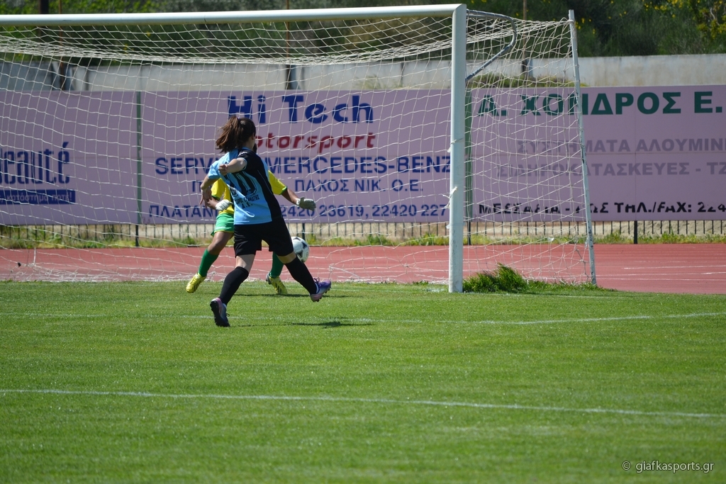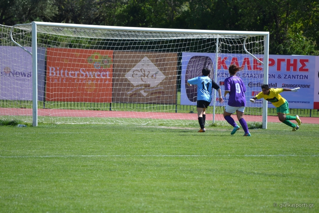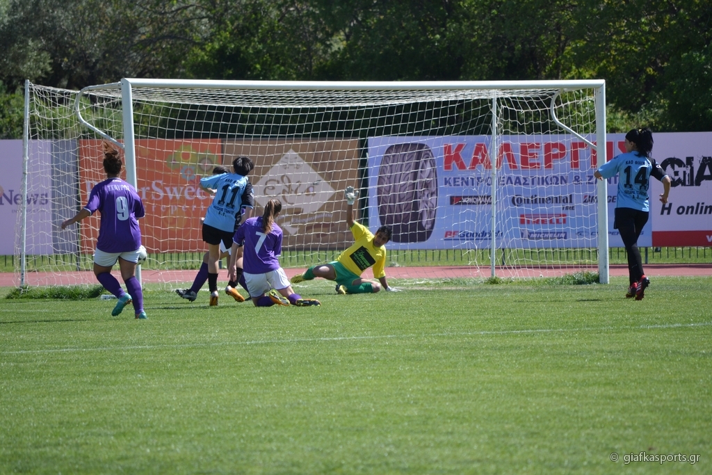 Η Κορκή ανατράπηκε στην περιοχή στο 70′ με τον κ.Καρκαλιανίδη να δείχνει το σημείο του πέναλντι.Την εκτέλεση ανέλαβε η Νικολοπούλου στέλνωντας την μπάλα στα δίχτυα για το 4-1.Στο 72′ Κορκή αύξησε κι άλλο την διαφορά με ωραία ατομική ενέργεια.Η Γιμελά έδωσε έτοιμο γκολ στην Κορκή στο 76′ με την νεαρή να φτάνει τα ”5” γκολ στο ματς.Το τελικό σκορ διαμόρφωσε η Νικολοπούλου στο 78′ με πανέμορφο σουτ στην δεξιά γωνία της Ντίμοβα.