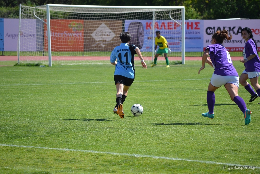 11′ ΓΚΟΛ!! Λάθος στην άμυνα του Φιλίνος με την Καλλίστη να βρίσκεται απέναντι από την Αποστολοπούλου και με ψύχραιμο πλασέ να κάνει το 0-1.
