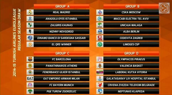 Στον τρίτο όμιλο με Μπάρτσα, Φενέρ, Μιλάνο, Μπάγερν και Τουρόφ ο Παναθηναϊκός. Επικεφαλής στο τέταρτο ο Ολυμπιακός με Βαλένθια, Λαμποράλ, Γαλατά, Ερ. Αστέρα και Νεπτούνας.