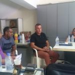 Η πρόεδρος της Τ.Ε. Ε.Ο.Κ. Δωδεκανήσου Ανδριάνα Μπαφίτη και οι συνεργάτες της στο Δ.Σ. καλωσόρισαν τους εκπροσώπους των συλλόγων και τους ευχήθηκαν καλή χρονιά με υγεία και επιτυχίες, ενώ τέθηκαν επί τάπητος όλα τα θέματα. Παρόντες ήταν οι κ.κ. Στάμος Καράβας, Τσαμπίκος Ποδιώτης και Φιλήμων Χατζηαντωνίου εκ μέρους της Τ.Ε. Ε.Ο.Κ. Δωδεκανήσου, οι οποίοι υποδέχθηκαν τους εκπροσώπους των συλλόγων της Δωδεκανήσου. Συγκεκριμένα στη σημερινή συνάντηση βρέθηκαν οι: Θεόφιλος Ξυπολιτάς (Γαλάζια Ακαδημία), Στάθης Βλαχοδήμος (Γαλάζια Ακαδημία, Κολοσσός), Θανάσης Σταμούλης (Καλλιθέα, Ελπίδα Πεταλούδων), Νίκος Μιμερίνης (Φοίβος Κω), Άκης Χούλης, Γιώργος Καλενδέρης (Γ.Α.Σ. Ιάλυσος), Στέφανος Καραολάνης (Α.Σ.Κ. Αρχάγγελος), Νίκος Φραγκεσκάκης (Ροδίων Άθλησις), Τσαμπίκος Κωνσταντινίδης (Ηρακλής Λάρδου) και Δημήτρης Χατζηστέργος (Έσπερος Κω). Επίσης το «παρών» έδωσαν ο τοπικός προπονητής Γιώργος Χατζηκαλημέρης και ο πρόεδρος του Σ.Δ.Κ.Δ. Άρης Φάκαρος, οι οποίοι επίσης κατέθεσαν τις προτάσεις και τις σκέψεις τους για τη νέα χρονιά.