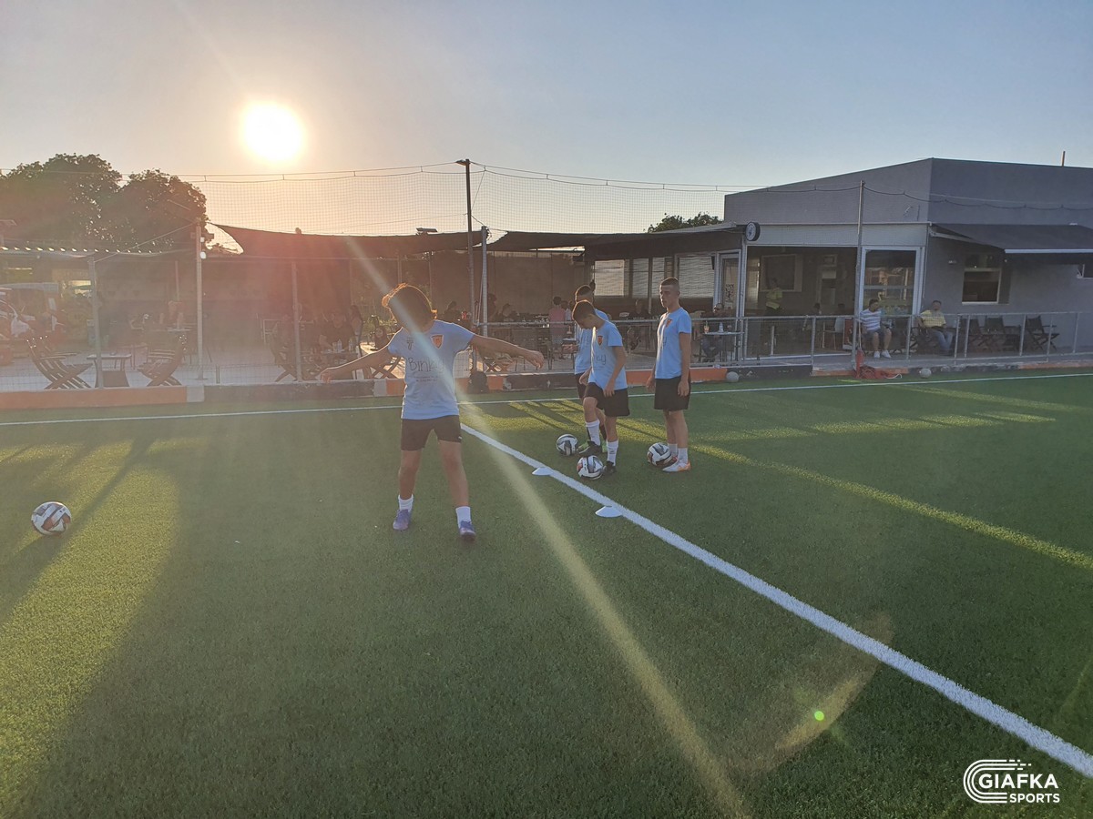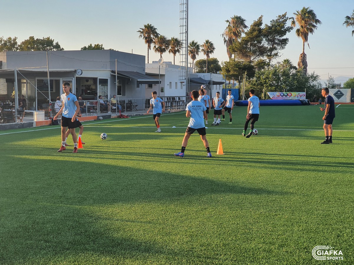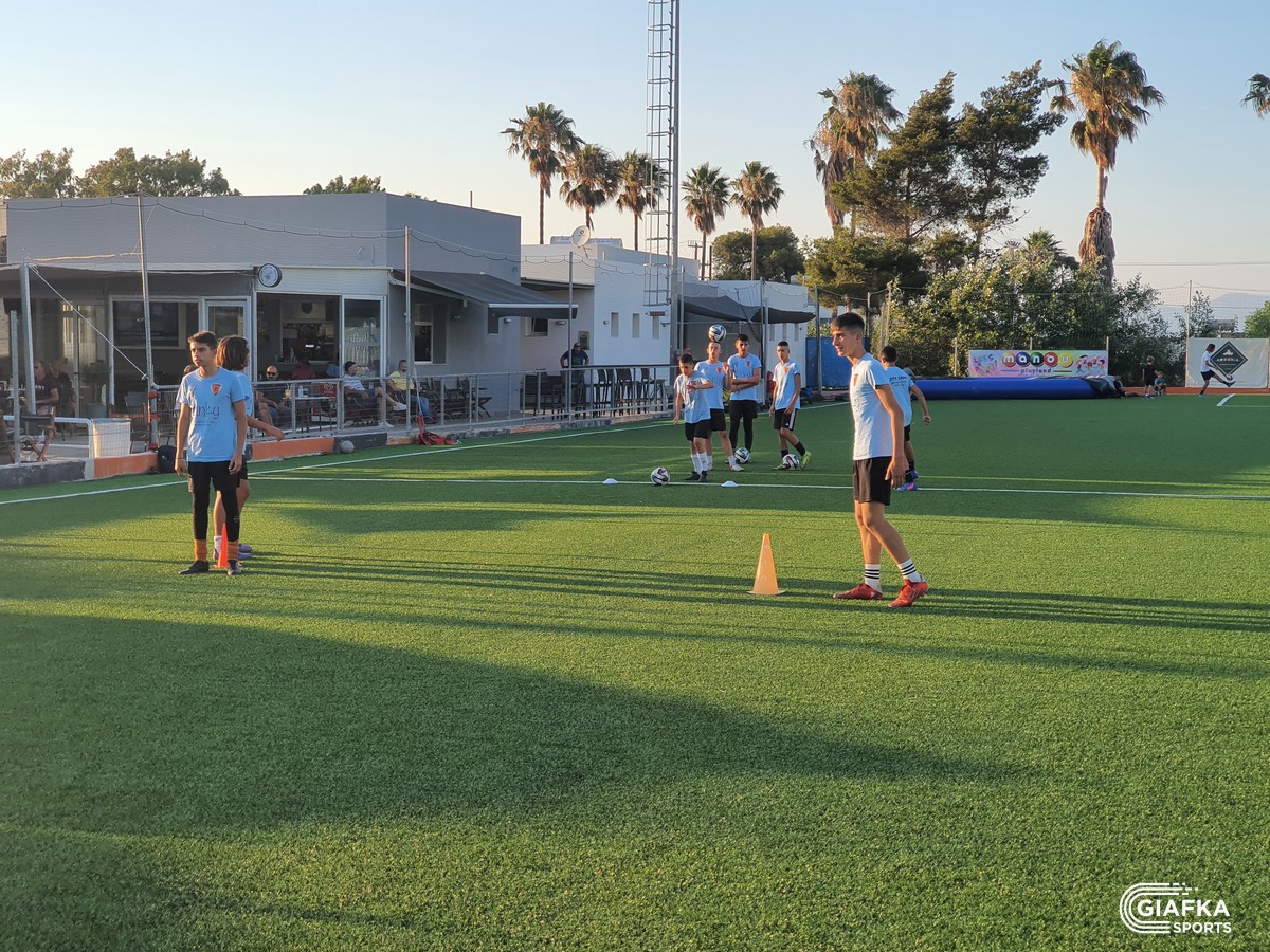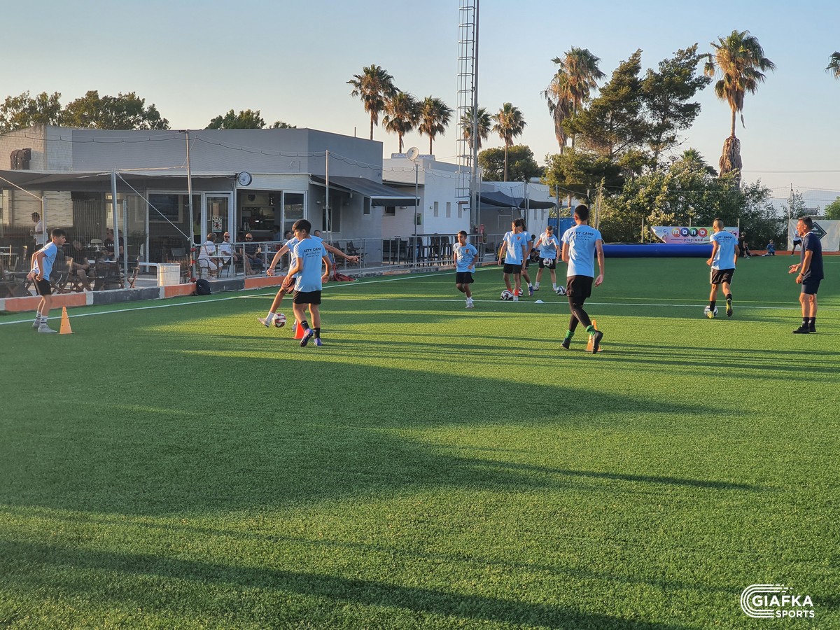 Οι Ιταλοί προπονητές της σχολής του Τότι προσπαθούν μέσα σε αυτό το σύντομο χρονικό διάστημα να μεταδώσουν κομμάτια απ’ τις γνώσεις και την μεθοδολογία με τους νεαρούς αθλητές να δείχνουν ιδιαίτερα ικανοποιημένοι.