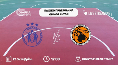 Παρακολουθήστε το Σάββατο 22 Οκτωβρίου στις 17:00 απ’ το γήπεδο Πυλίου, το ματς του παιδικού πρωταθλήματος του Ομίλου νήσων ανάμεσα σε Α.Ε Δικαίου και Ακαδημία Καλύμνου.