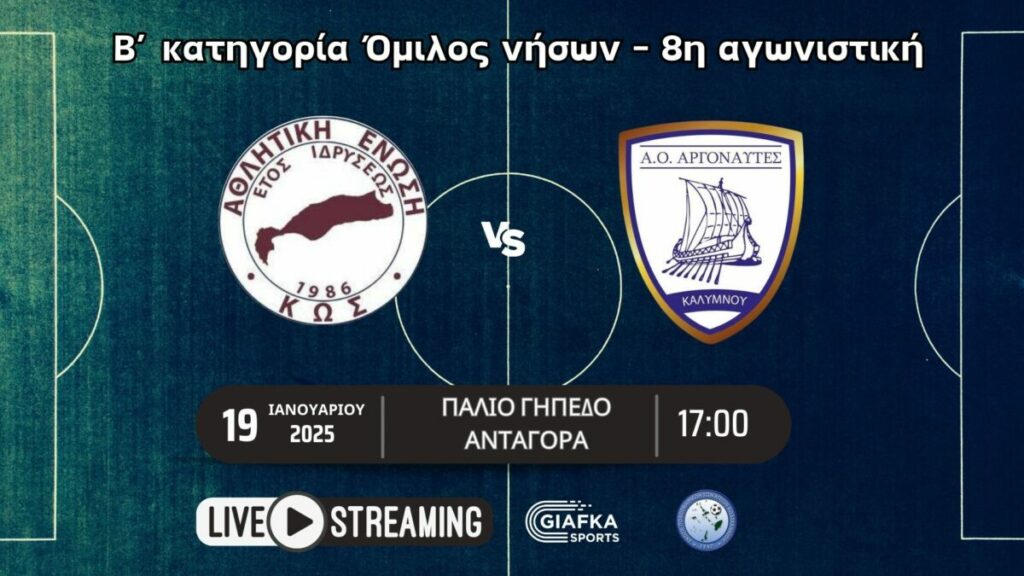 Σε Live Streaming το Α.Ε Κως – Αργοναύτες Καλύμνου