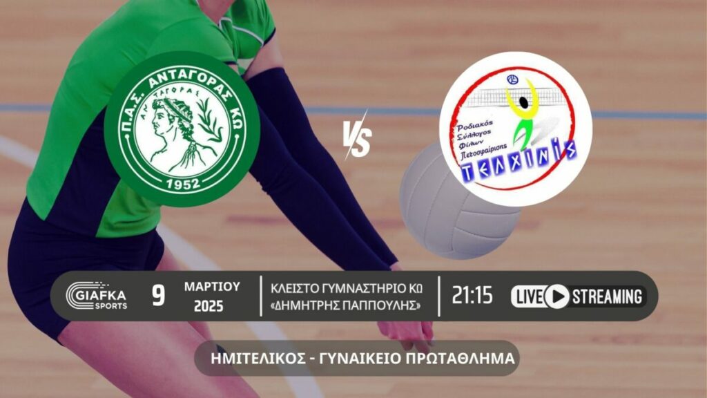 Παρακολουθήστε σε Live Streaming απ’ το giafkasports.gr τον ημιτελικό για το γυναικείο πρωτάθλημα βόλεϊ ανάμεσα σε Ανταγόρα και Τελχινίδα την Κυριακή στις 21:15 απ’ το Κλειστό γυμναστήριο Κω «Δημήτρης Παππούλης».