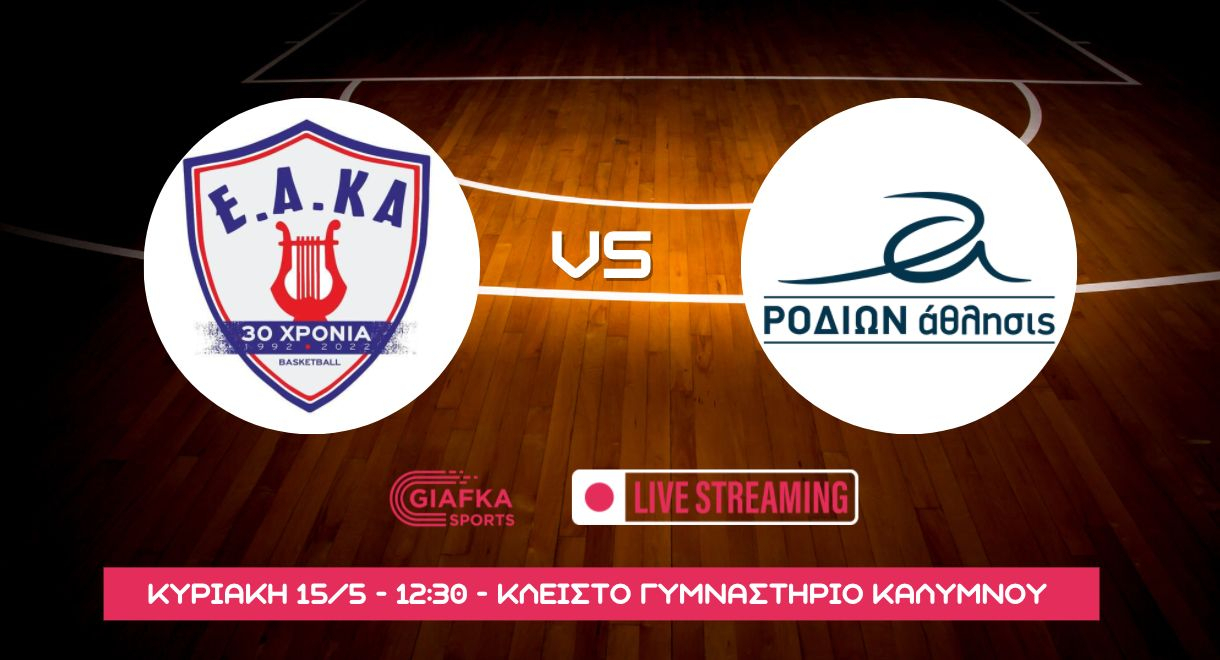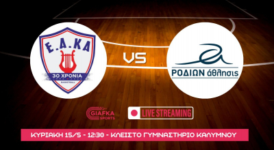 Παρακολουθήστε την Κυριακή 15/5/2022 στις 12:30 την αναμέτρηση για την 5η αγωνιστική των πλέι οφ του ανδρικού πρωταθλήματος ανάμεσα σε Ε.Α.ΚΑ και Ροδίων Άθλησις σε Live Streaming απ’ το giafkasports.gr