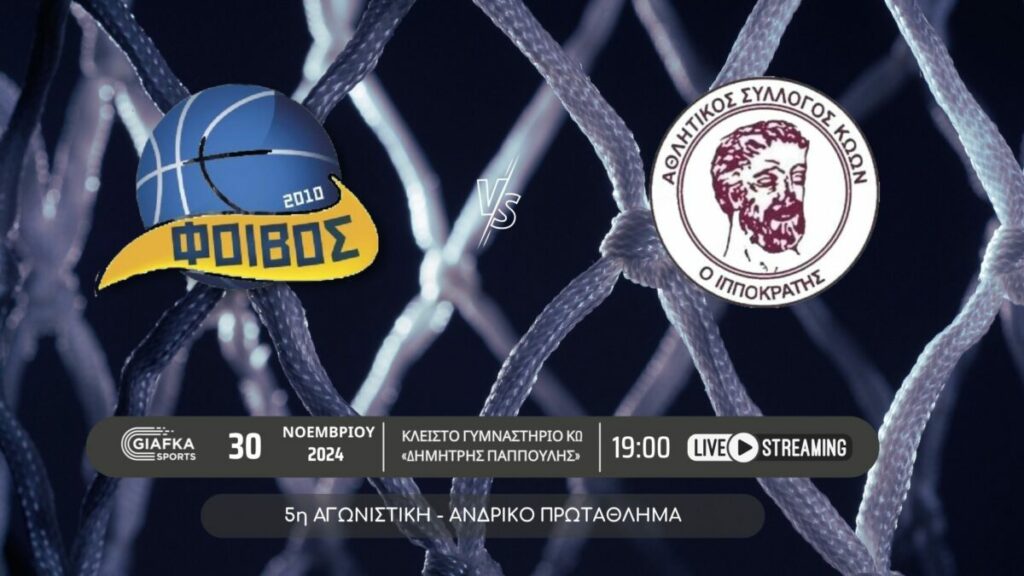 Για την 5η αγωνιστική του ανδρικού πρωταθλήματος ο Φοίβος υποδέχεται τον Ιπποκράτη στο Κλειστό γυμναστήριο Κω «Δήμητρης Παππούλης». Παρακολουθήστε το ματς σε Live Streaming απ’ το giafkasports.gr