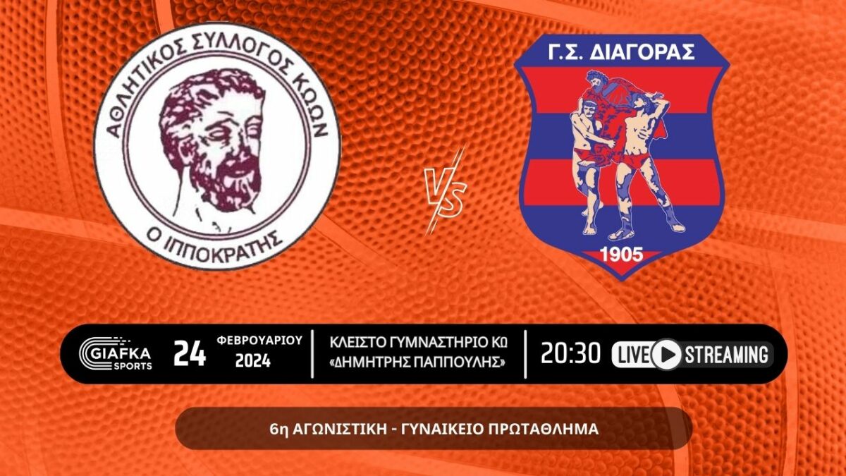 Για την 6η αγωνιστική του γυναικείου πρωταθλήματος ο Ιπποκράτης υποδέχεται τον Διαγόρα το Σάββατο 24/2 στις 20:30 στο Κλειστό γυμναστήριο Κω «Δημήτρης Παππούλης». Παρακολουθήστε το ματς σε Live Streaming απ’ το giafkasports.gr