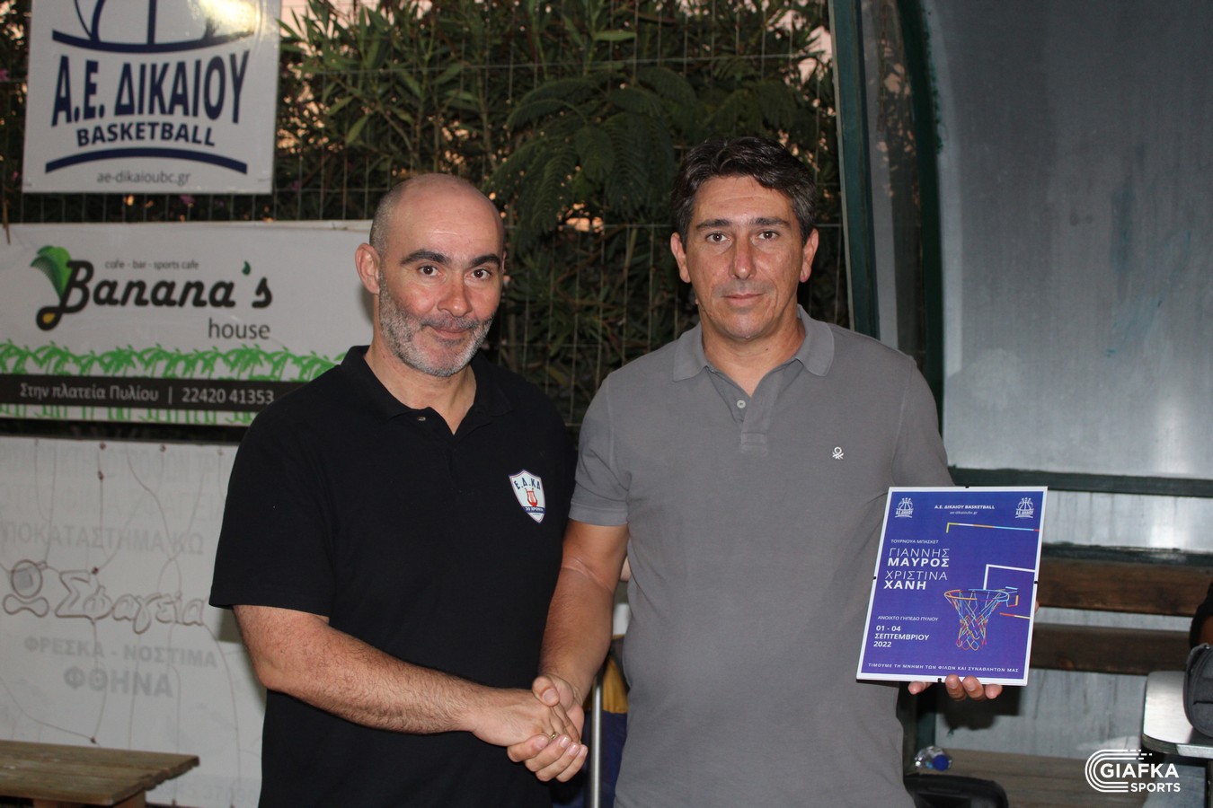 Οι «κυανόλευκοι» τίμησαν τον Ηρακλή 2000 και την Ε.Α.ΚΑ για την παρουσία τους με τον αντιπρόεδρο της Α.Ε Δικαίου, Βαγγέλη Κουζούκα και τον αδερφός της Χριστίνας Χανή, Χρήστο να κάνουν την απονομή.