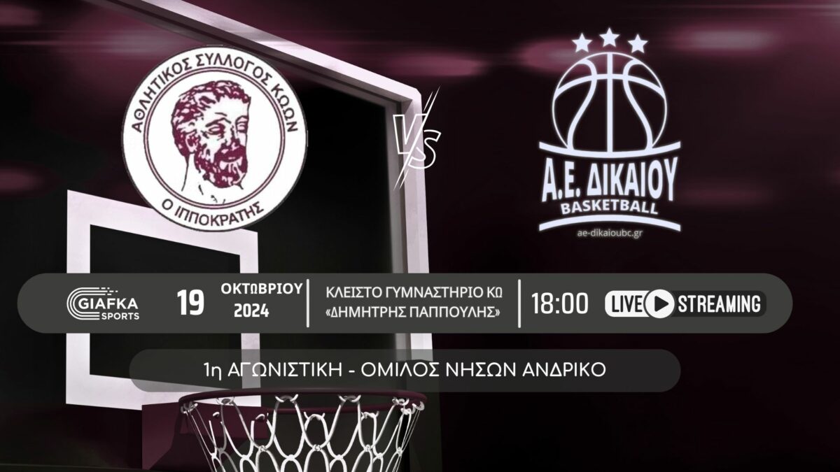 Για την πρεμιέρα του ανδρικού πρωταθλήματος ο Ιπποκράτης αντιμετωπίζει στο Κλειστό γυμναστήριο Κω «Δημήτρης Παππούλης» την Α.Ε Δικαίου το Σάββατο 19/10 στις 18:00. Παρακολουθήστε το ματς σε Live Streaming απ’ το giafkasports.gr.