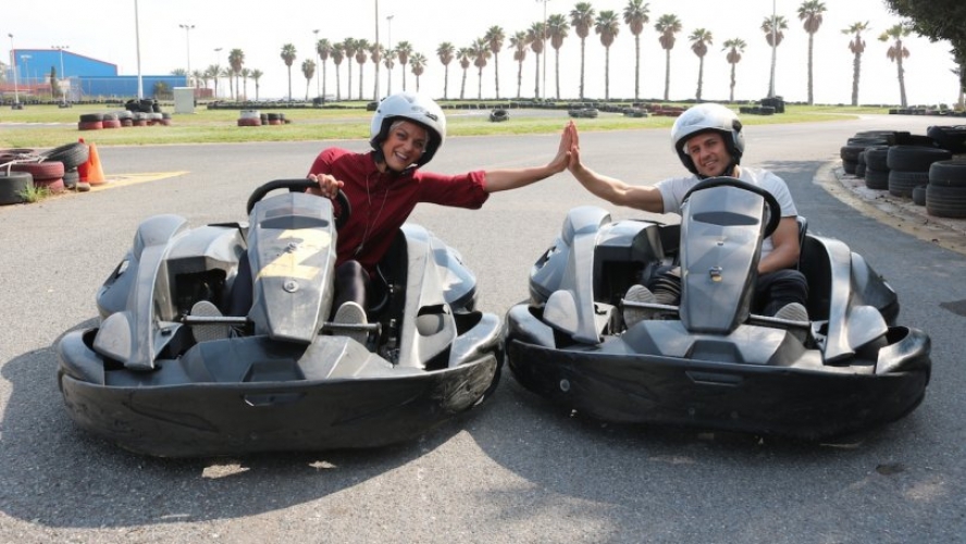 Από την μία, ο Βαγγέλης Πλατέλλας αγαπάει την ταχύτητα! Από την άλλη, η Χριστίνα Βραχάλη δεν είχε ξανακάνει ποτέ go-kart! Οπότε, καταλαβαίνετε ότι το αποτέλεσμα εντός πίστας ήταν δεν ήταν πολύ δίκαιο!