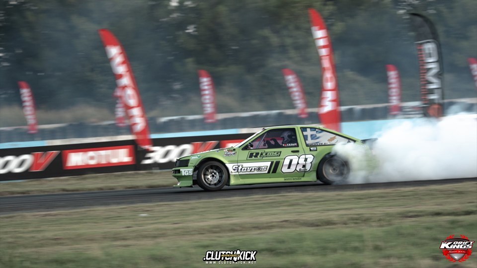 Στις 5-6 Οκτωβρίου πραγματοποιήθηκε ο τελικός του πρωταθλήματος Drift Kings στην πίστα των Σερρών με αρκετές συμμετοχές από πολλές χώρες του κόσμου! Το corolla έδειξε τον δυναμικό του χαρακτήρα από την προπόνηση κάνοντας πολύ ωραία περάσματα! Στα βαθμολογημένα ωστόσο μια λάθος επιλογή γόμας ελαστικών έκανε το αμάξι να έχει υπερβολική πρόσφυση και να μην στρίβει. Αυτό είχε ως αποτέλεσμα να μην πάρω μια τόσο καλή βαθμολογία στα μονά βαθμολογημένα. Μετά από αυτή την ατυχή επιλογή, για να μπω 16αδα έπρεπε να αντιμετωπίσω τον Νικόλα Πατάκ, έναν πάρα πολύ καλό και καταξιωμένο οδηγό τον οποίο κατάφερα και κέρδισα. Για να μπω 8αδα αντιμετώπισα έναν από τους καλύτερους οδηγούς του αγώνα, τον Marco Zakouril. Στο πρώτο πέρασμα είχα την θέση του επιτιθέμενου (πίσω) και μετά από ένα φρενάρισμα του Zakouril έπεσα πάνω του με αποτέλεσμα να μηδενιστώ! Όταν μπήκα μπροστά έκανα ένα πολύ καλό πέρασμα αλλά δεν ήταν αρκετό να ανατρέψει τον προηγούμενο μηδενισμό μου! Εκεί τελείωσε για εμένα και αυτός ο γύρος!