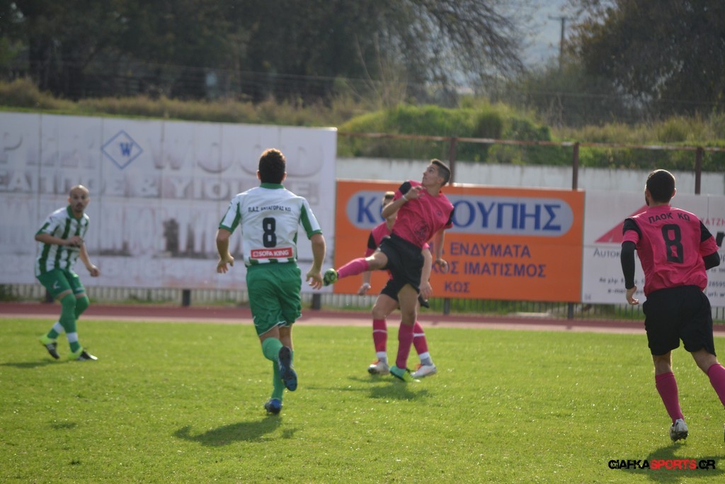 Σε ένα κακό ποιοτικά παιχνίδι κυρίως στην κανονική του διάρκεια (0-0) ο ΠΑΟΚ Κω είχε περισσότερη όρεξη και πάθος και κατάφερε απολύτως δίκαια να επικρατήσει με 1-0, με γκολ του Μικέ Ξυπολιτά στο 96’ και να περάσει στην επόμενη φάση του κυπέλλου Δωδεκανήσου «Αυγουστίνος» για τον Όμιλο νήσων. Οι «πιτσιρικάδες» του Στάθη Γκουντελίτσα έχοντας πολλά τρεξίματα και φρεσκάδα κατάφεραν να κρατήσουν το υπέρ του προβάδισμα μέχρι και το τέλος της παράτασης.