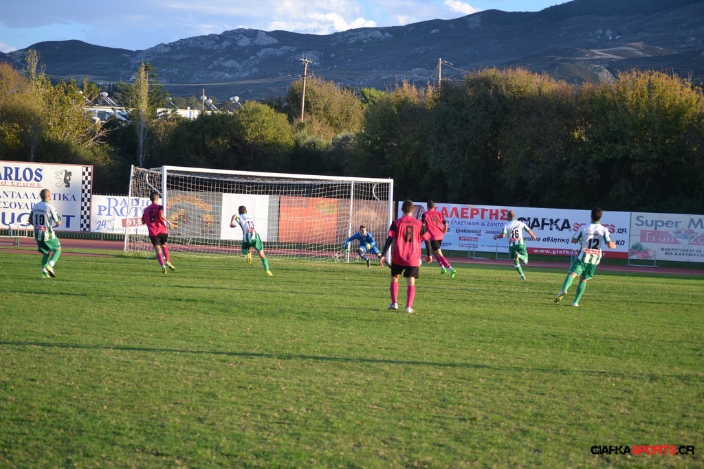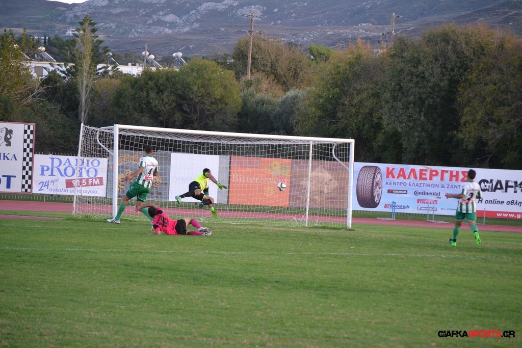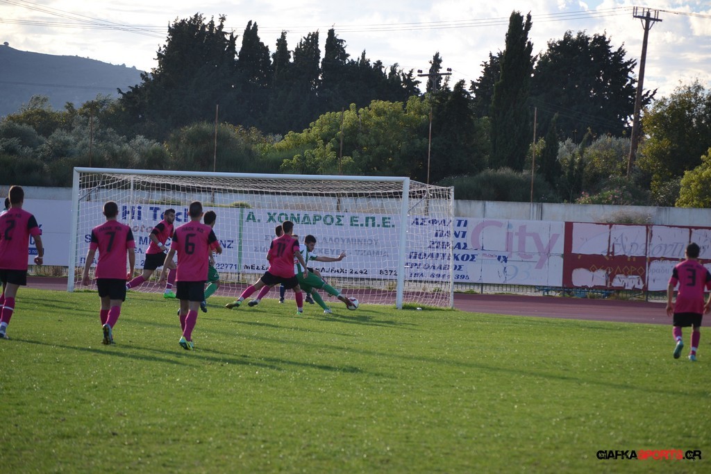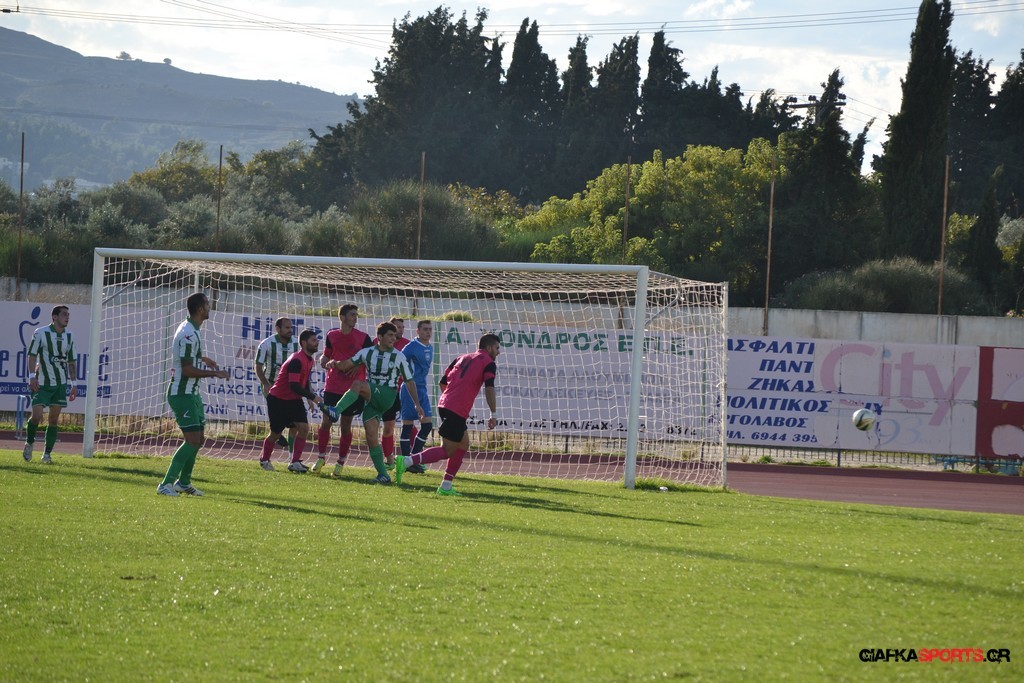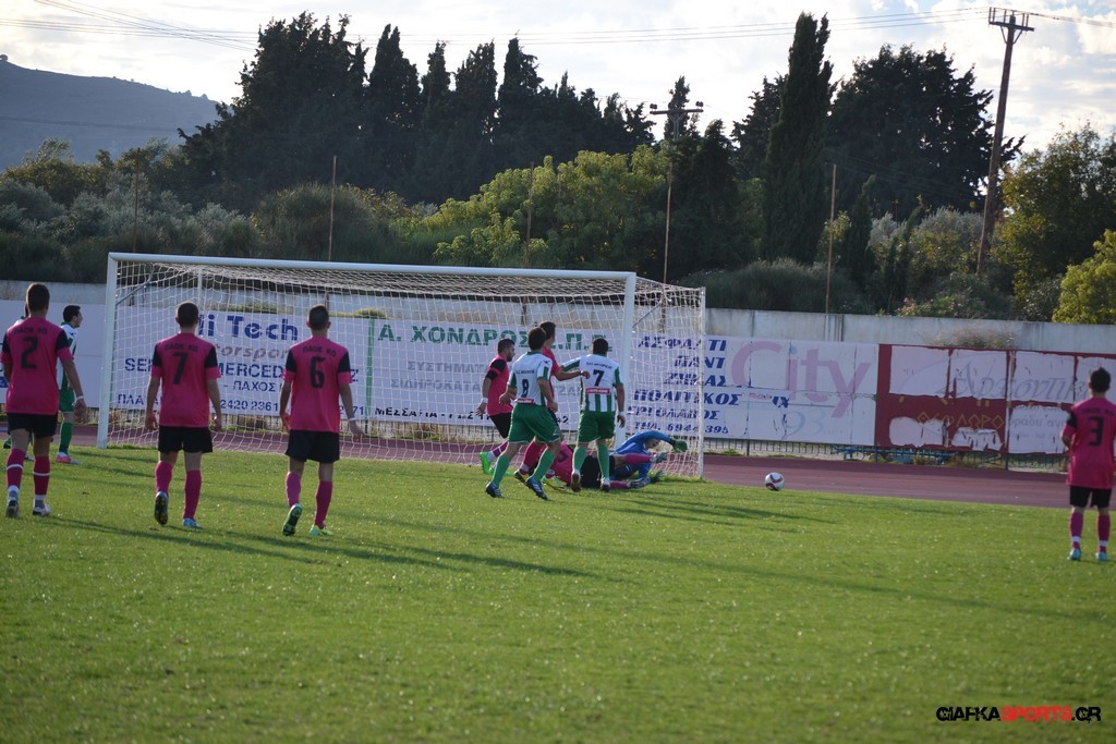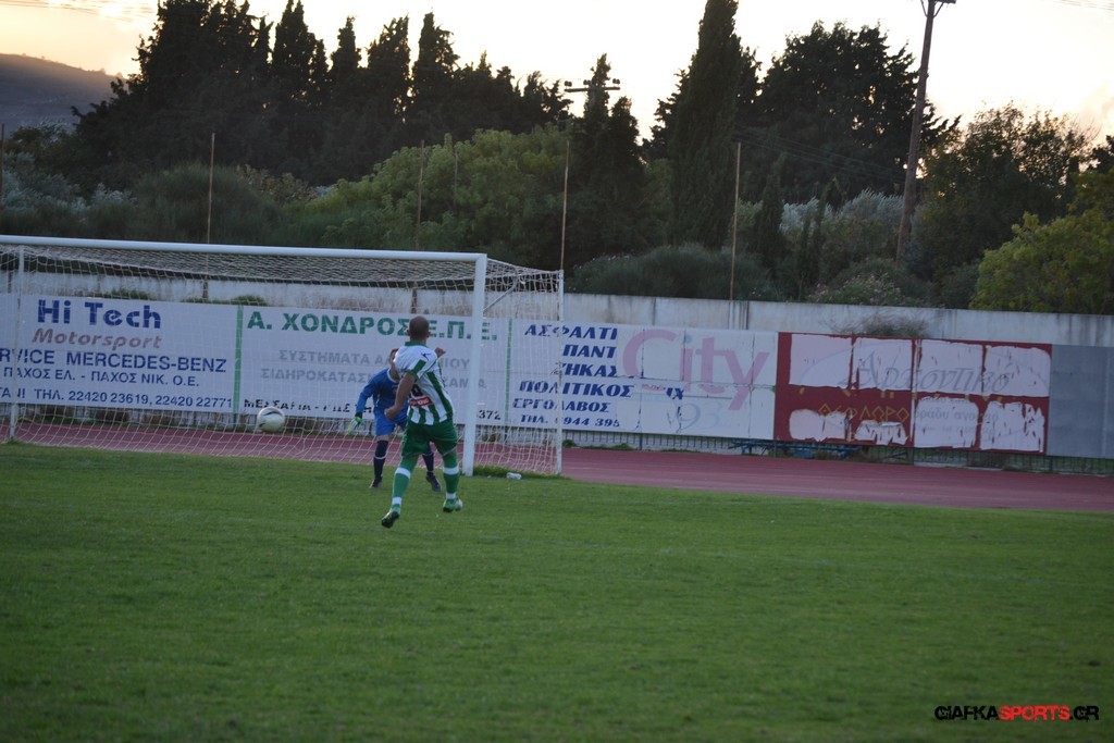 40′ Απευθείας εκτέλεση φάουλ του Αρκούδα, η μπάλα απ’ τις κόντρες στρώθηκε στον Κουρζή ο οποίος έκανε το δυνατό σουτ με τον Τυρά να αποκρούει στην αριστερή του γωνία σε κόρνερ.