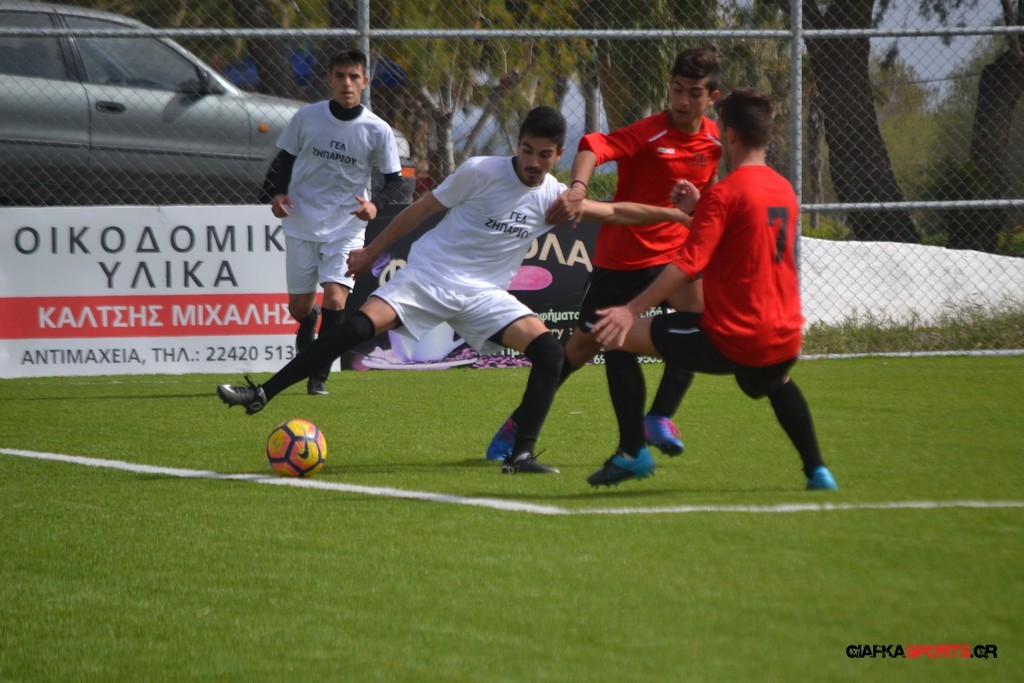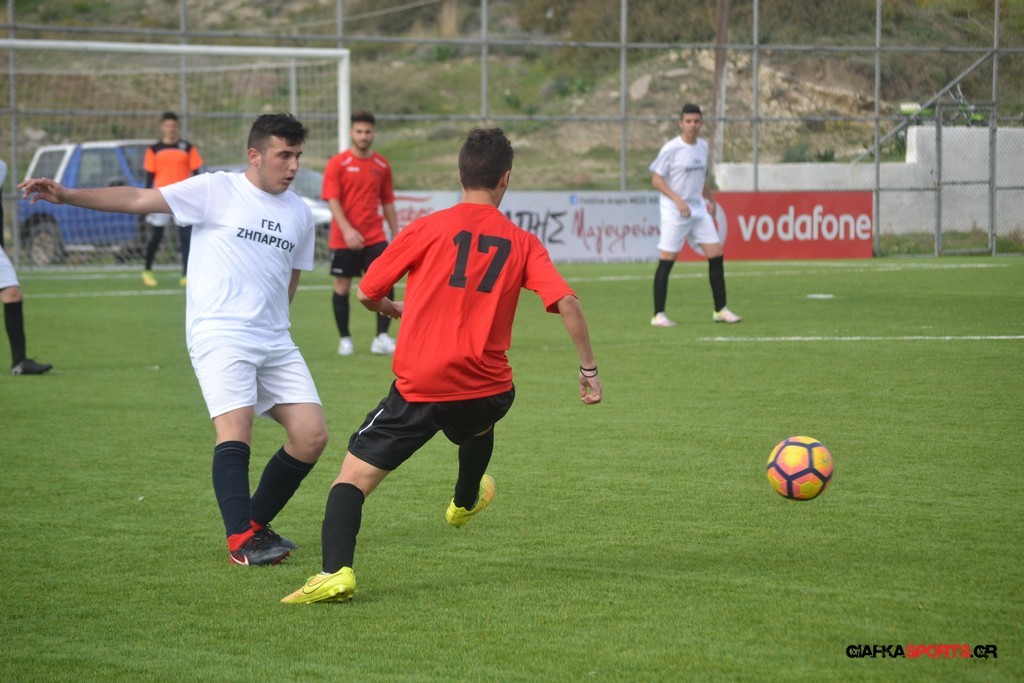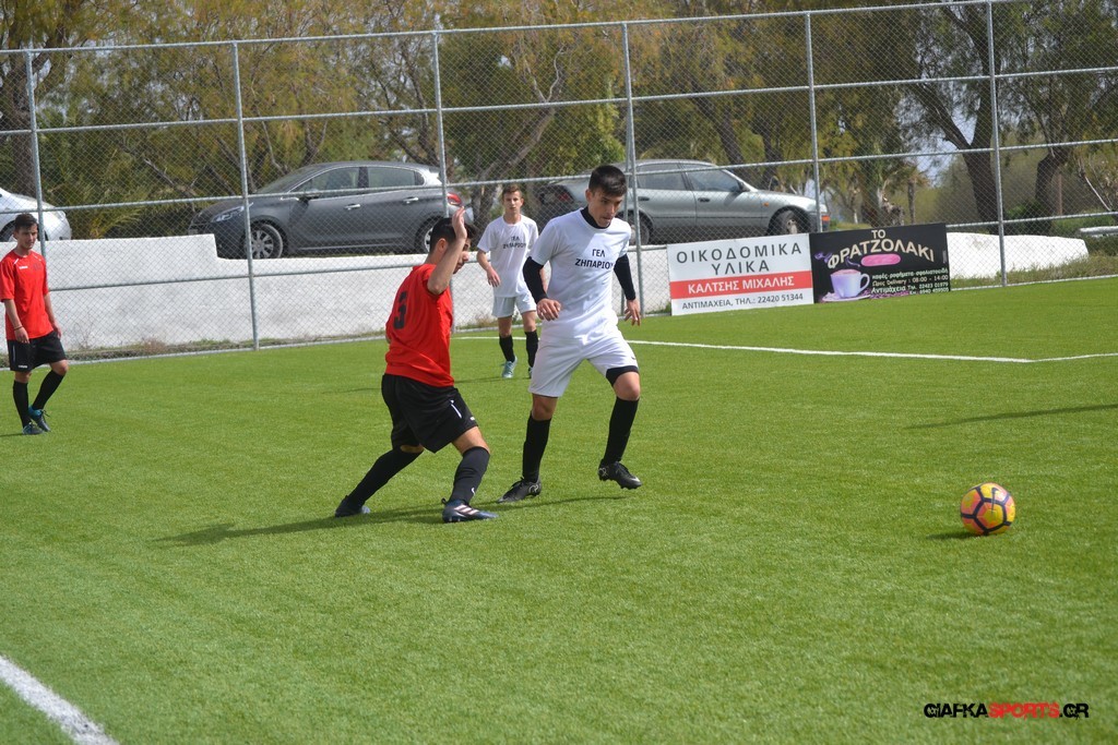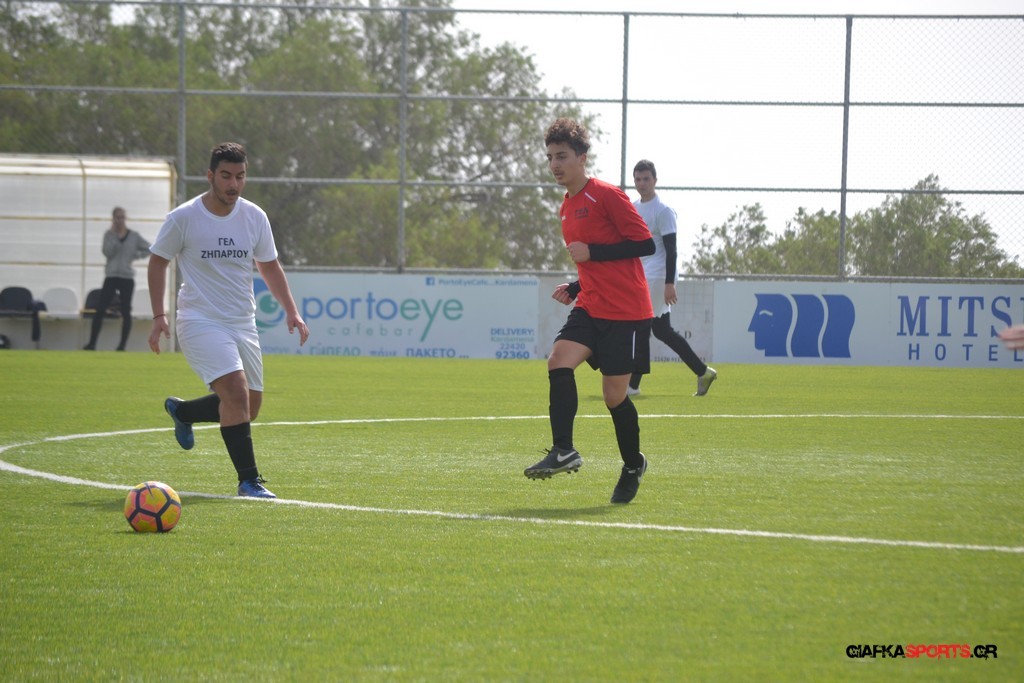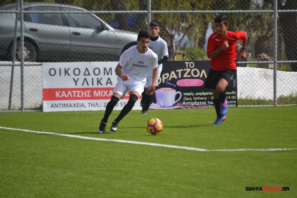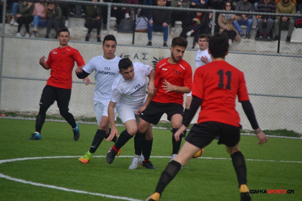 Η ομάδα του Ζηπαρίου ήταν αυτή που κατάφερε να πάρει προβάδισμα στο πρώτο μέρος με την απευθείας εκτέλεση φάουλ του Μαύρου και παρόλο την μεγάλη πίεση και τις πολλές ευκαιρίες του Λυκείου Αντιμάχειας το 0-1 παρέμεινε μέχρι το φινάλε του ημιχρόνου.
