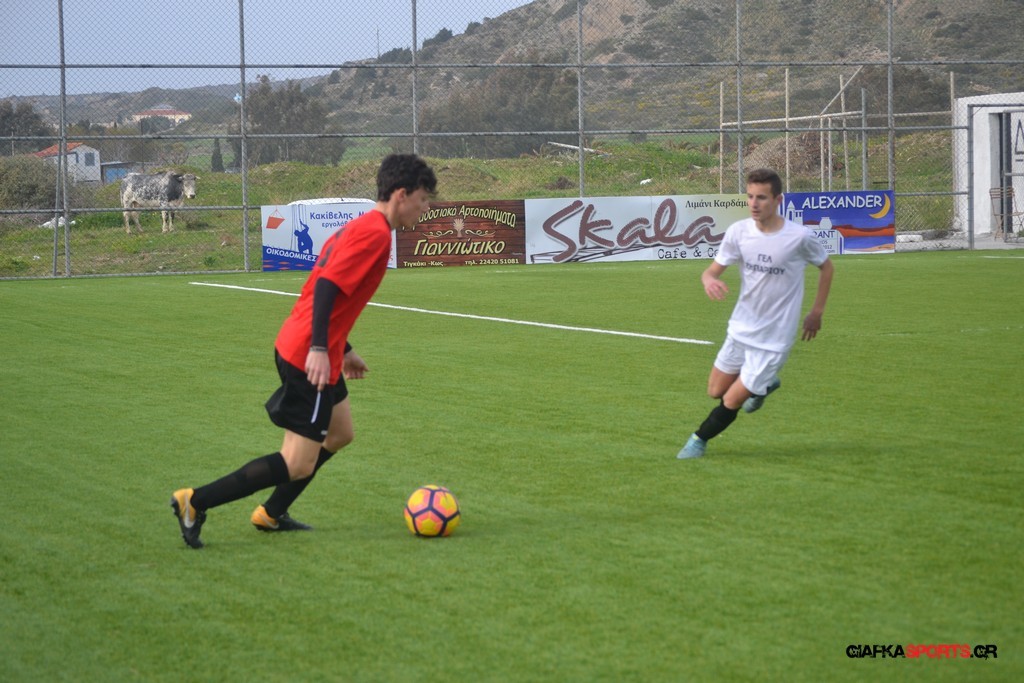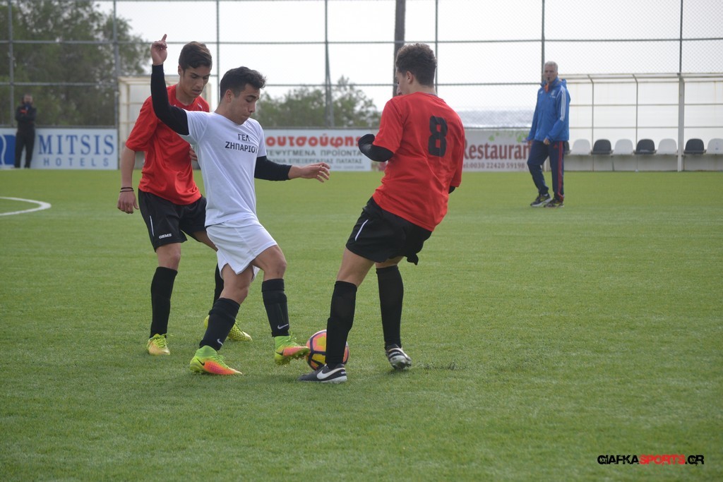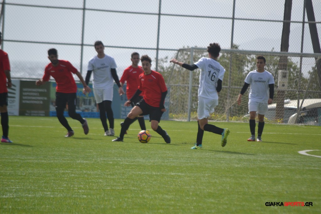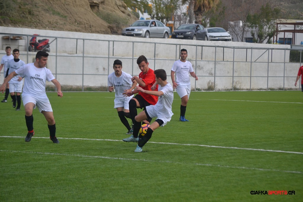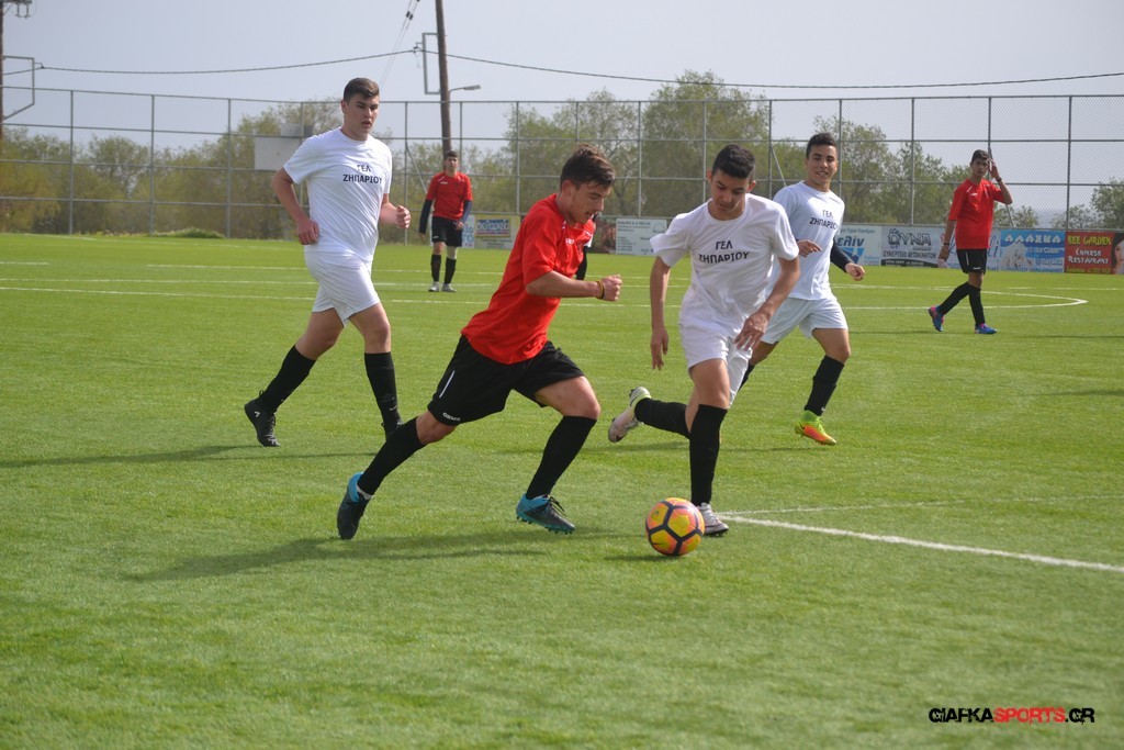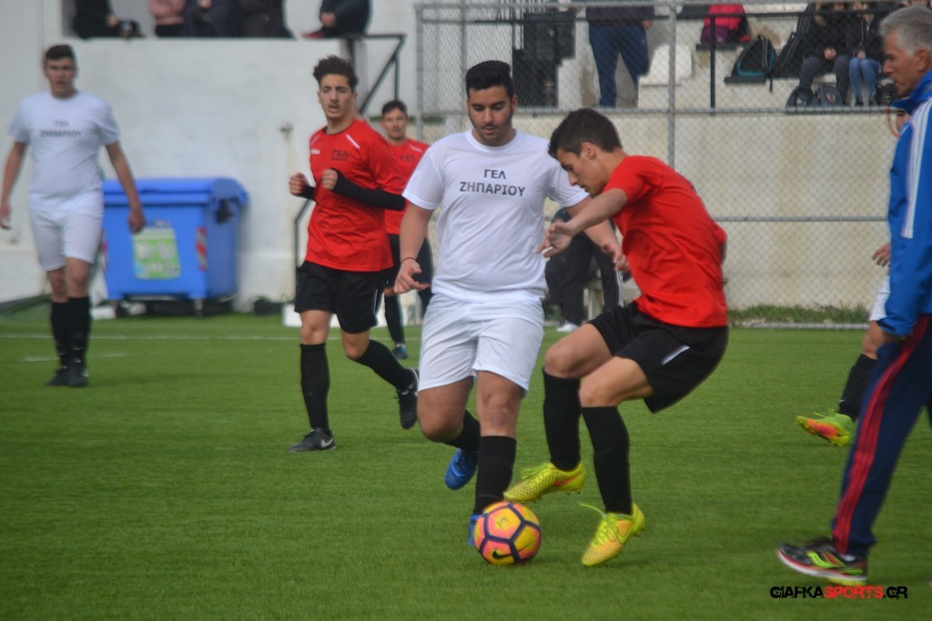 Η ομάδα του Ζηπαρίου ήταν αυτή που κατάφερε να πάρει προβάδισμα στο πρώτο μέρος με την απευθείας εκτέλεση φάουλ του Μαύρου και παρόλο την μεγάλη πίεση και τις πολλές ευκαιρίες του Λυκείου Αντιμάχειας το 0-1 παρέμεινε μέχρι το φινάλε του ημιχρόνου.