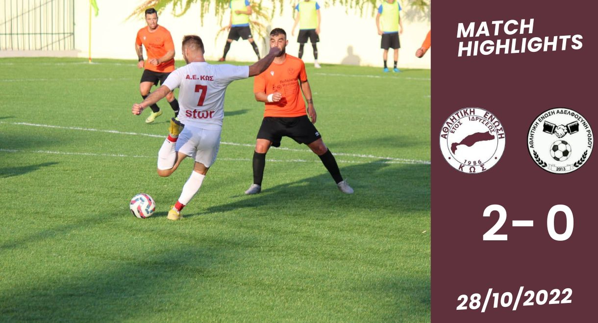 Με σκόρερ τους Φυτά και Παπανικολάου η Α.Ε Κως επικράτησε με 2-0 της Αδελφοσύνης για την 1η αγωνιστική της Α’ κατηγορίας Δωδεκανήσου.