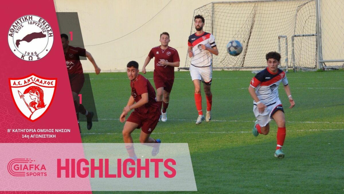 Για την 14η αγωνιστική της Β’ κατηγορίας του Ομίλου νήσων, Α.Ε Κως και Αντίμαχος αναδείχθηκαν ισόπαλοι (1-1). Δείτε τις καλύτερες φάσεις και τα γκολ της αναμέτρησης.