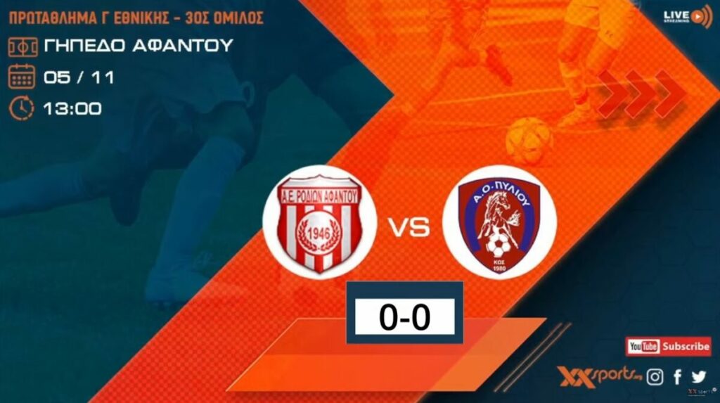 Στο 0-0 έμειναν, Α.Ε.Ρ. Αφάντου και Α.Ο Πυλίου για την 9η αγωνιστική της Γ’ Εθνικής (3ος Όμιλος).Δείτε τις καλύτερες φάσεις όπως τις κατέγραψε το xxsports.org
