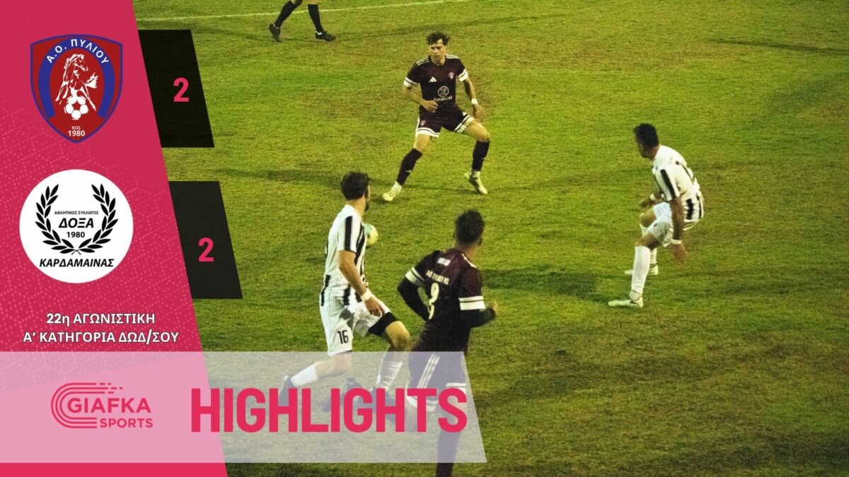 Για την 22η αγωνιστική της Α’ κατηγορίας, Α.Ο Πυλίου και Δόξα Καρδάμαινας αναδείχθηκαν ισόπαλοι (2-2). Δείτε τα highlights της αναμέτρησης απ’ το giafkasports.gr