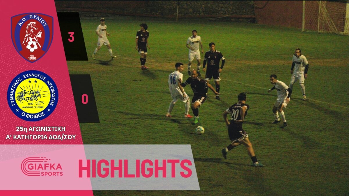 Για την 25η αγωνιστική της Α’ κατηγορίας Δωδεκανήσου ο Α.Ο Πυλίου επικράτησε με 3-0 του Φοίβου Κρεμαστής στο γήπεδο Πυλίου. Δείτε τα highlights της αναμέτρησης απ’ το giafkasports.gr