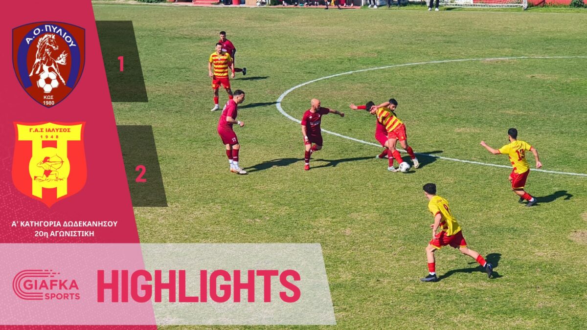 Για την 20η αγωνιστική της Α’ κατηγορίας ο Ιάλυσος επικράτησε του Α.Ο Πυλίου με 1-2. Δείτε τις καλύτερες φάσεις και τα γκολ της αναμέτρησης.