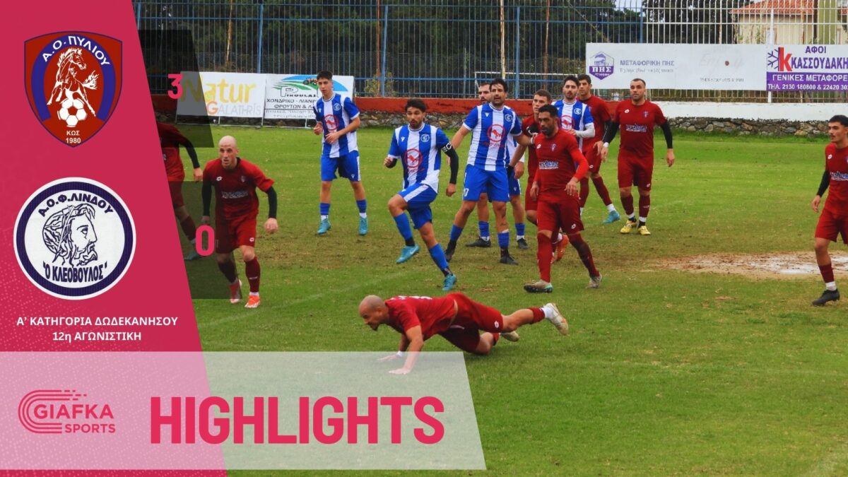 Με δύο γκολ του Δρόσου και ένα του Πη ο Α.Ο Πυλίου επικράτησε με 3-0 του Κλεόβουλου Λίνδου για την 12η αγωνιστική της Α’ κατηγορίας. Δείτε τις καλύτερες φάσεις και τα γκολ της αναμέτρησης απ’ το giafkasports.gr