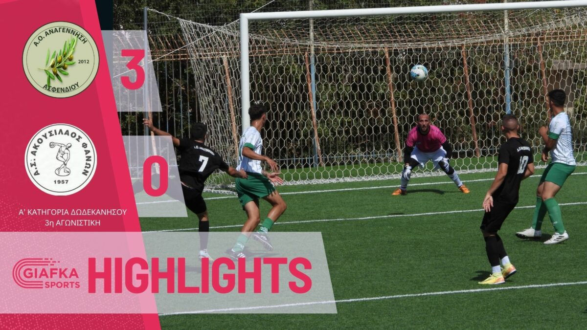 Με σκόρερ τους Σπύρου, Βουκομάνοβιτς και Μαυρίδη η Αναγέννηση Ασφενδιού επικράτησε με 3-0 του Ακουσίλαου και έκανε το 3/3 στο πρωτάθλημα της ‘Α κατηγορίας. Δείτε τις καλύτερες φάσεις και τα γκολ της αναμέτρησης.