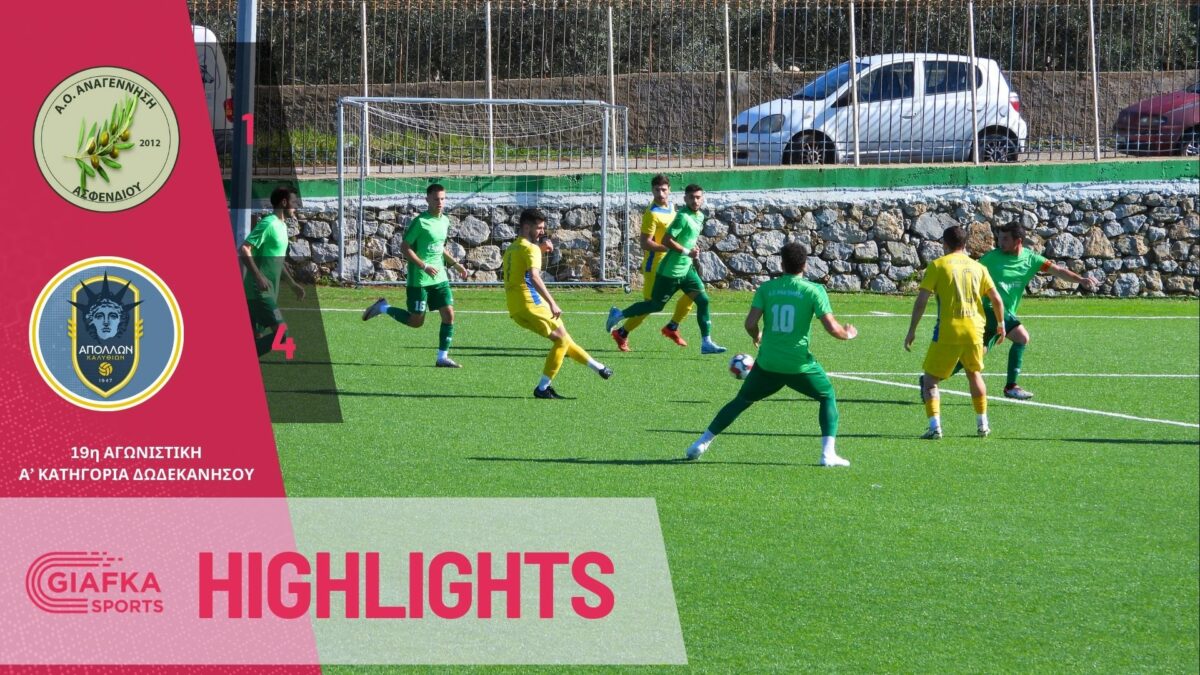 Για την 19η αγωνιστική της Α’ κατηγορίας ο Απόλλων Καλυθιών επικράτησε με 1-4 της Αναγέννησης Ασφενδιού στο γήπεδο Ζηπαρίου. Δείτε τις καλύτερες φάσεις και τα γκολ της αναμέτρησης απ’ το giafkasports.gr