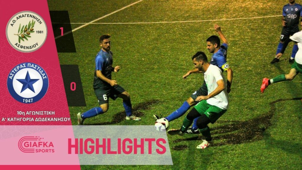 Για την 10η αγωνιστική της Α’ κατηγορίας Δωδεκανήσου η Αναγέννηση Ασφενδιού με γκολ – πέναλτι του Μάριου Σπύρου επικράτησε με 1-0 του Αστέρα Παστίδας. Δείτε τα highlights της αναμέτρησης απ’ το giafkasports.gr
