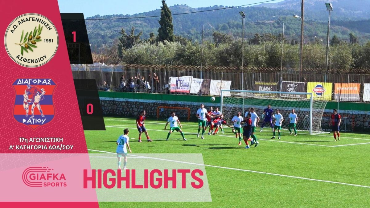Για την 17η αγωνιστική της Α’ κατηγορίας Δωδεκανήσου η Αναγέννηση Ασφενδιού επικράτησε με 1-0 του Διαγόρα Βατίου με γκολ του Μάριου Σπύρου. Δείτε τα highlights της αναμέτρησης απ’ το giafkasports.gr