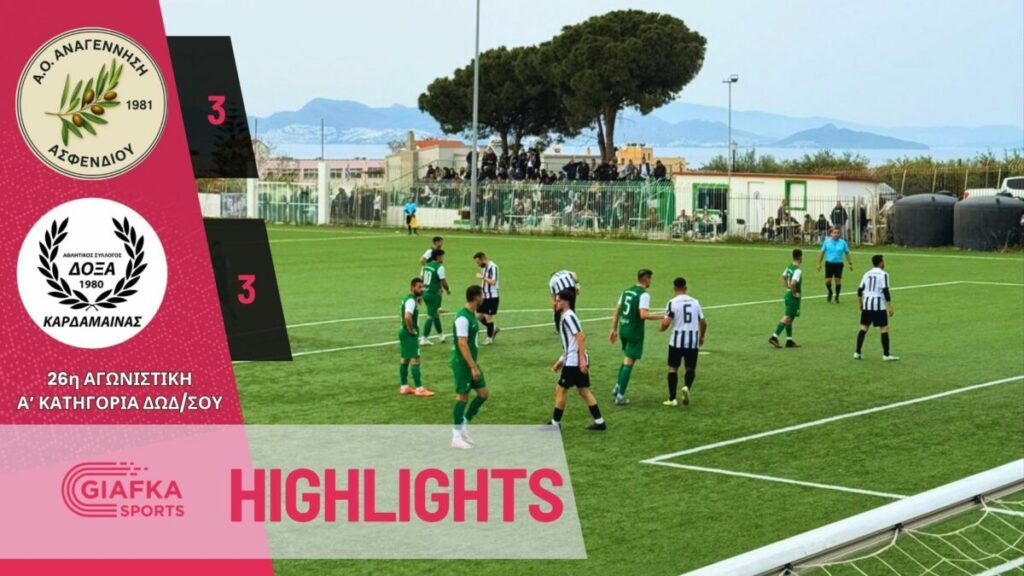 Για την 26η αγωνιστική της Α’ κατηγορίας Αναγέννηση Ασφενδιού και Δόξα Καρδάμαινας αναδείχθηκαν ισόπαλες (3-3). Δείτε τα highlights της αναμέτρησης απ’ το giafkasports.gr