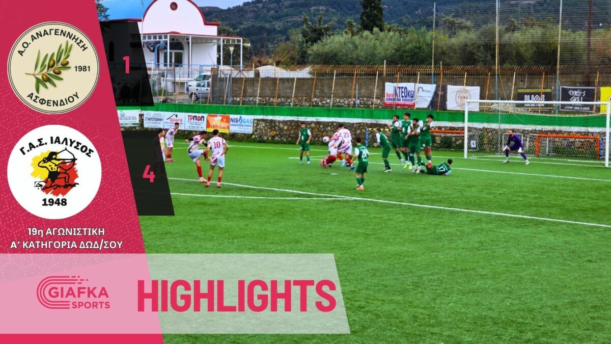 Για την 19η αγωνιστική της Α’ κατηγορίας ο Ιάλυσος επικράτησε με 1-4 της Αναγέννησης Ασφενδιού. Δείτε τα highlights της αναμέτρησης απ’ το giafkasports.gr